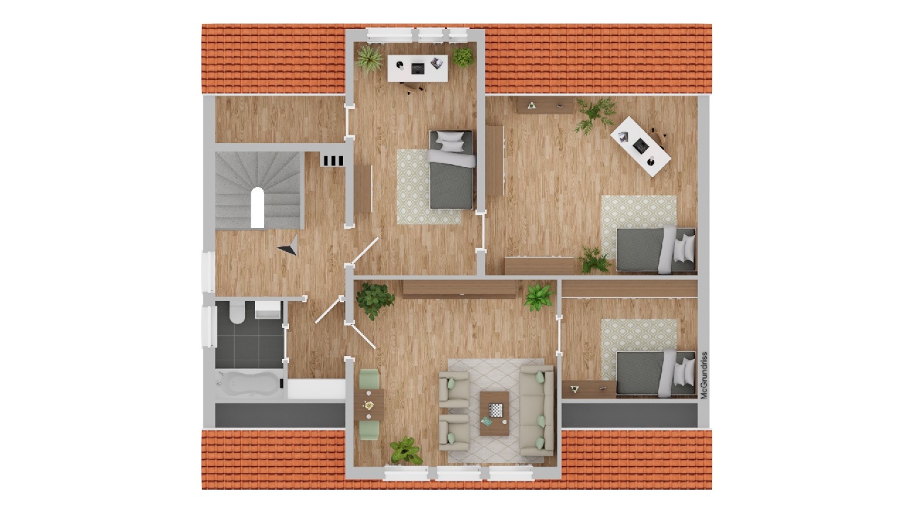 Heizung: Elektro-Fußbodenheizung im UG, EG und DG, im DG zusätzlich Radiatoren