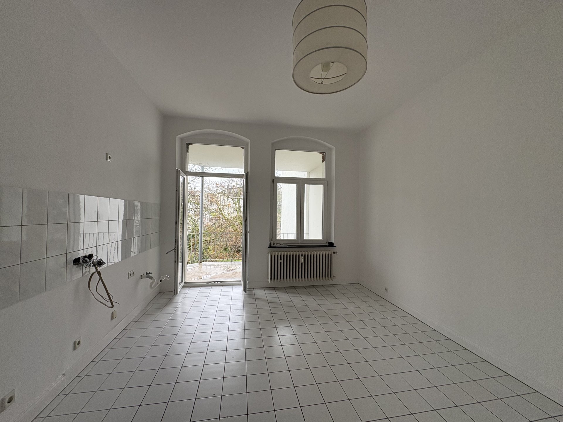Diese frisch renovierte Altbau-Wohnung ist ideal für Singles oder Paare, die eine zentrale und dennoch ruhige Lage schätzen. Beim Betreten der Wohnung gelangen Sie in eine Diele mit Einbauschrank für eine Garderobe. Linkerhand befindet sich das geräumige Tageslicht-Bad mit Dusche und Wanne. Ebenfalls links, und damit zum ruhigen Innenhof, liegt die große Wohnküche mit Zugang zum Balkon, auf dem Sie entspannte Stunden genießen werden.