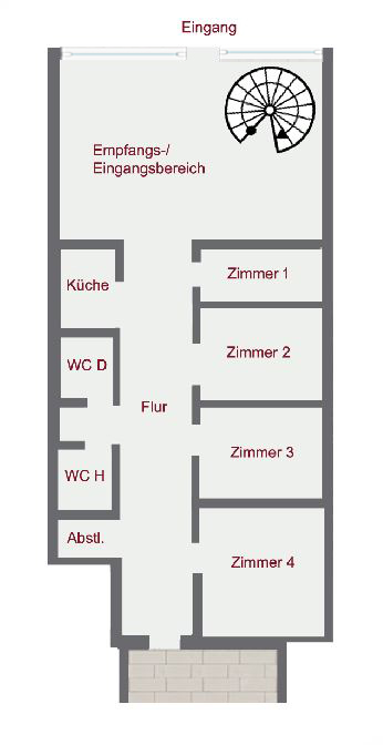 Für ausreichend Stauraum sorgen ein Kellerraum sowie ein praktischer Abstellraum mit Waschmaschinenanschluss. Ein besonderes Highlight ist der Freiplatz im Hinterhof in Verbindung mit der eigenen Terrasse, die vielseitige Nutzungsmöglichkeiten eröffnet – etwa als Aufenthaltsbereich für Mitarbeiter oder für repräsentative Zwecke. Besonders funktional ist die Ausstattung jedes Büroraums mit einem eigenen Wasserzu- und -abfluss, wodurch sich die Immobilie auch hervorragend für Praxis-, Kosmetik- oder andere Dienstleistungsbetriebe eignet. Eine ansprechend gestaltete Mitarbeiterküche rundet das Angebot ab und sorgt für ein angenehmes Arbeitsumfeld.