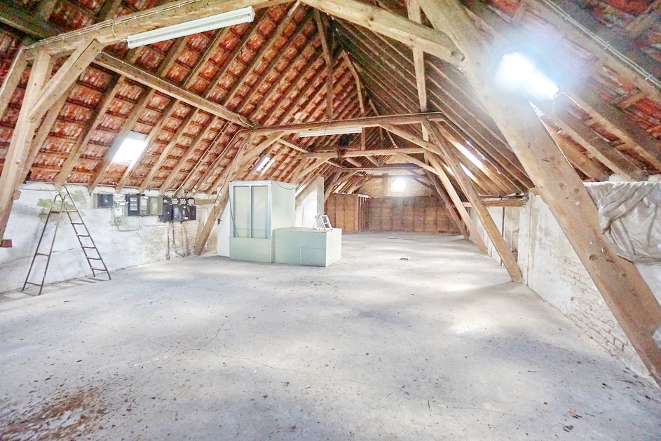 Der ehemalige Verkaufsraum des Landhandels, der früher zur Vermarktung von Getreide genutzt wurde, könnte wieder als gewerbliche Fläche dienen oder in ein stilvolles Home-Office umgewandelt werden, wo Sie in Ruhe arbeiten oder Gäste empfangen können.