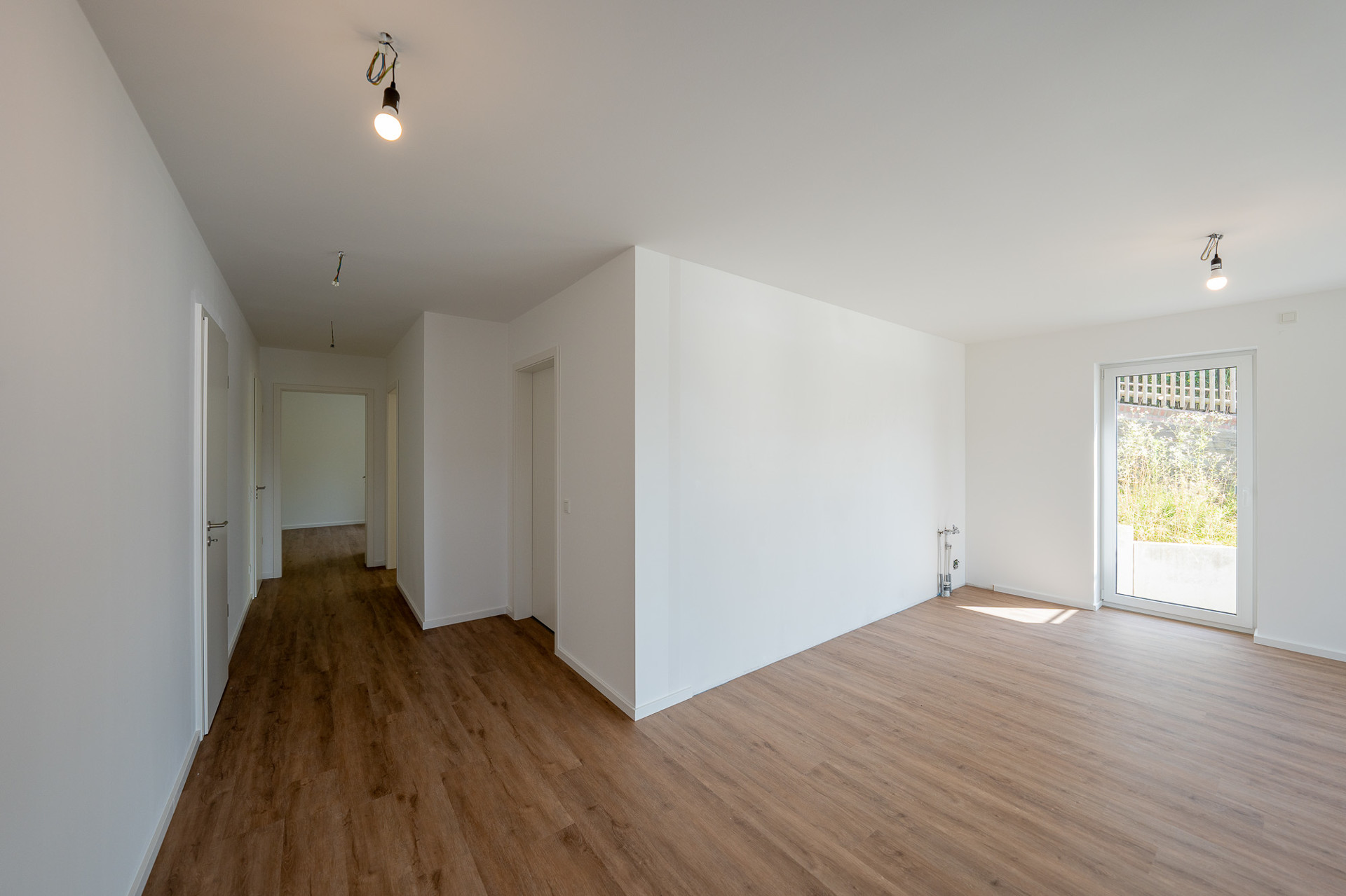 – Heller Wohn- und Kochbereich – mit großen Fensterflächen und direktem Zugang zur Terrasse