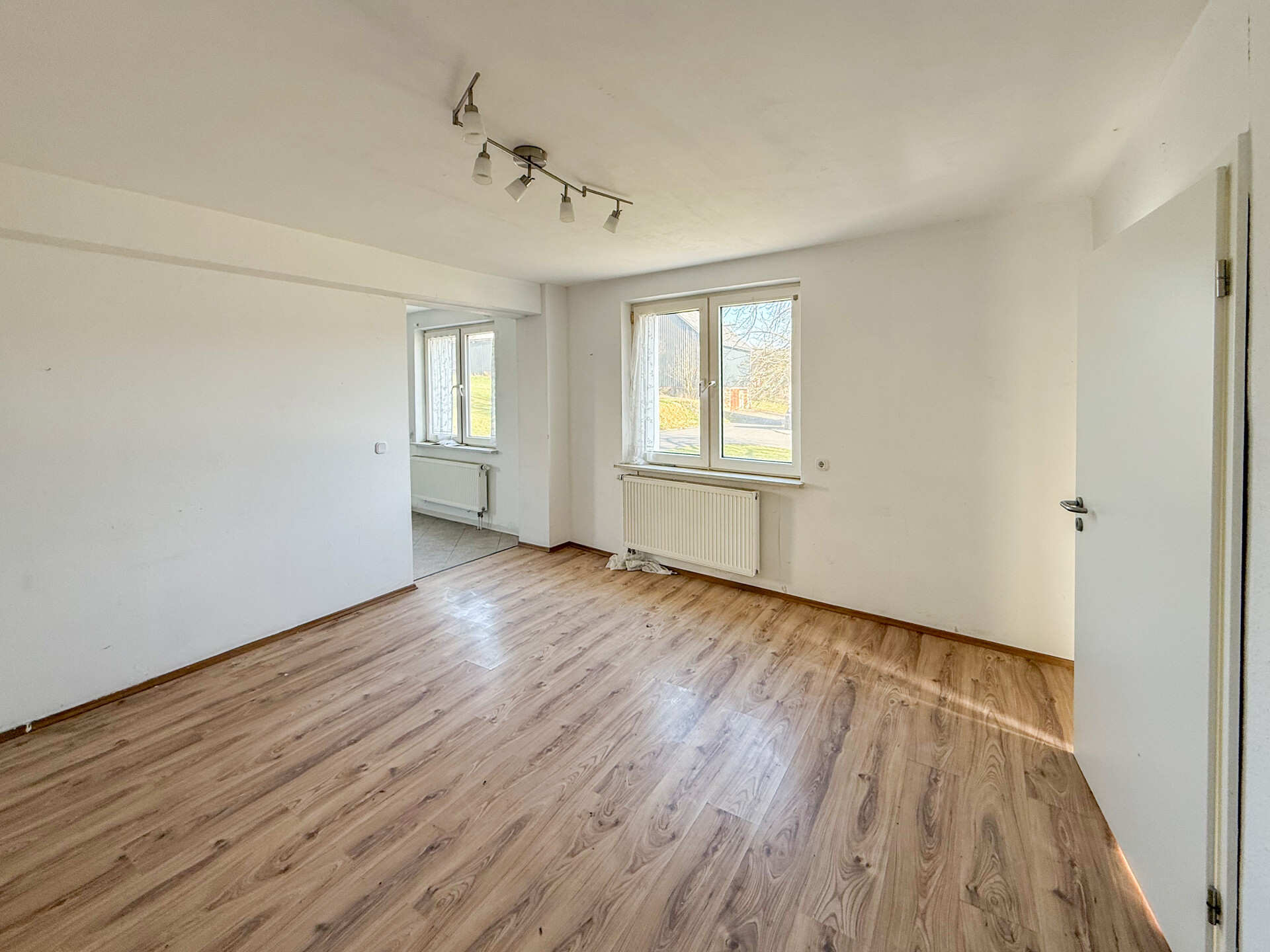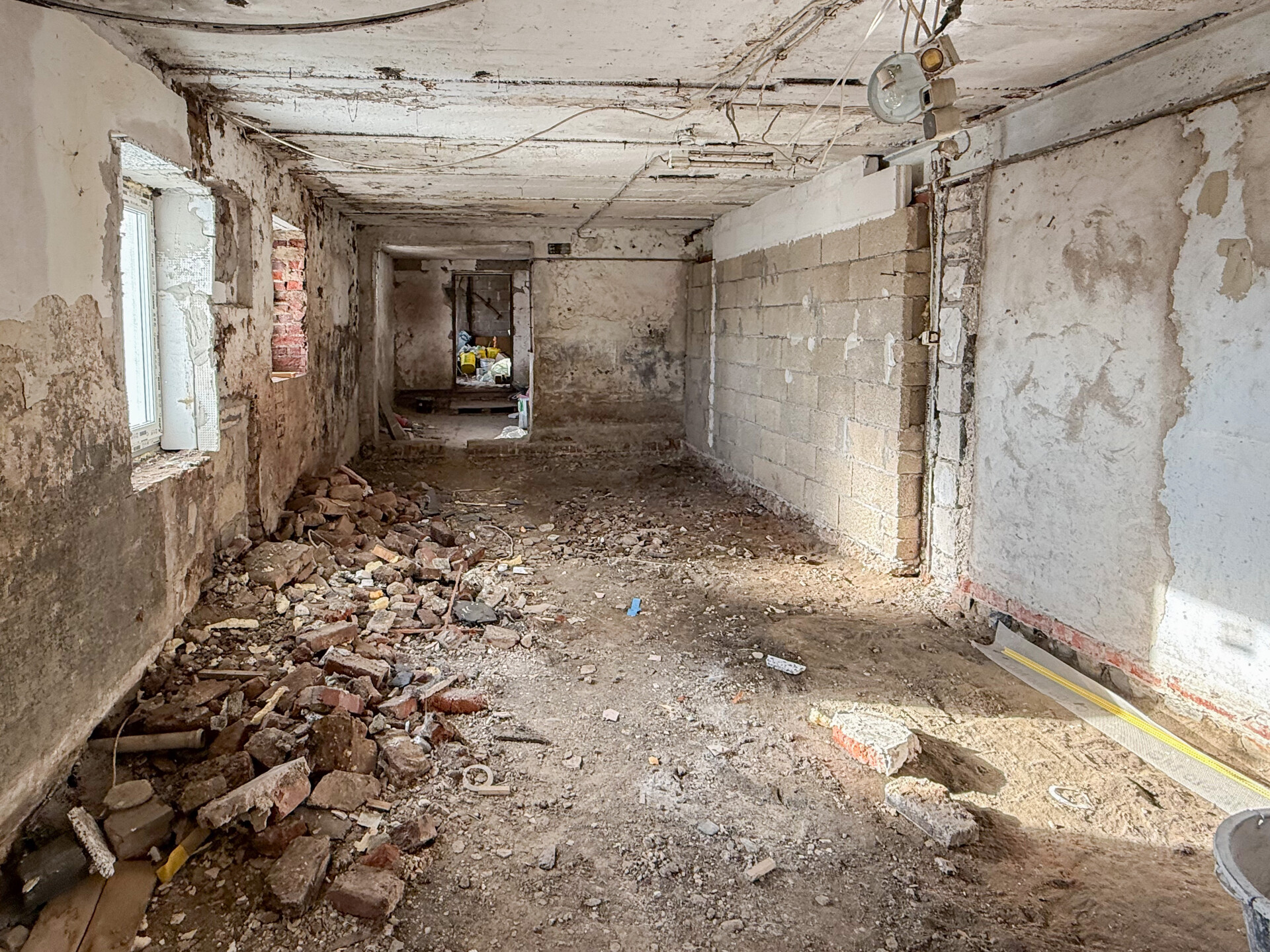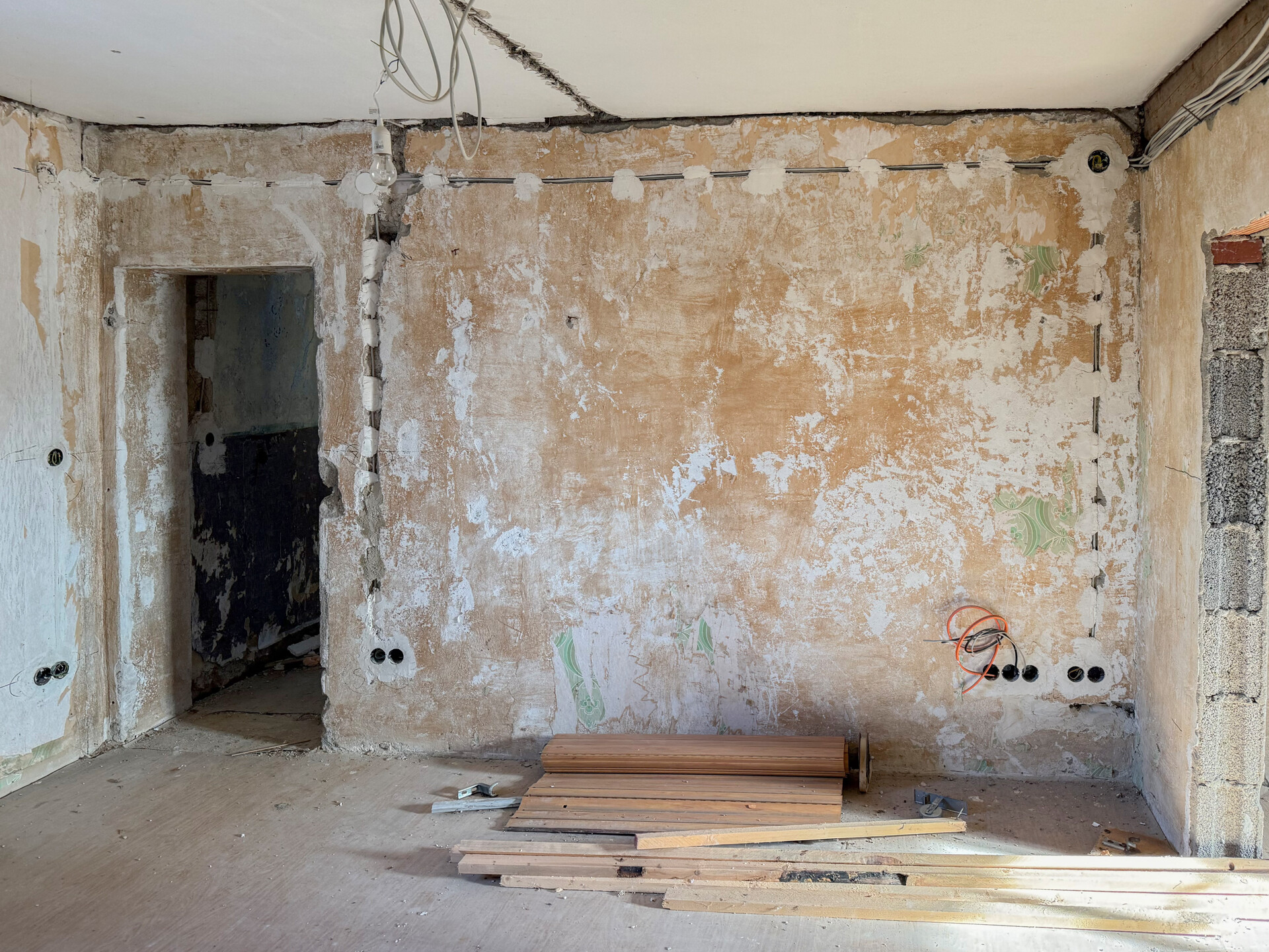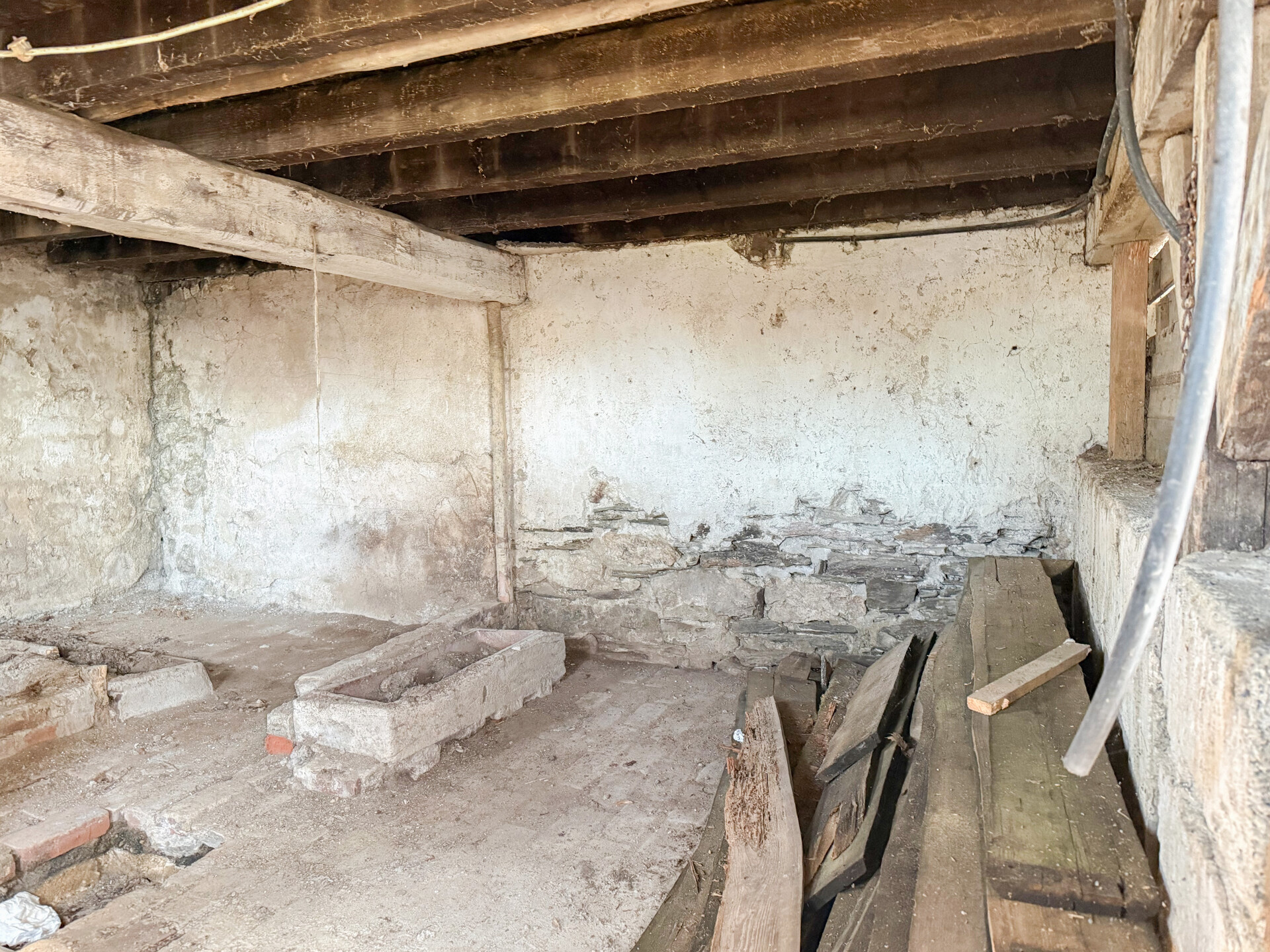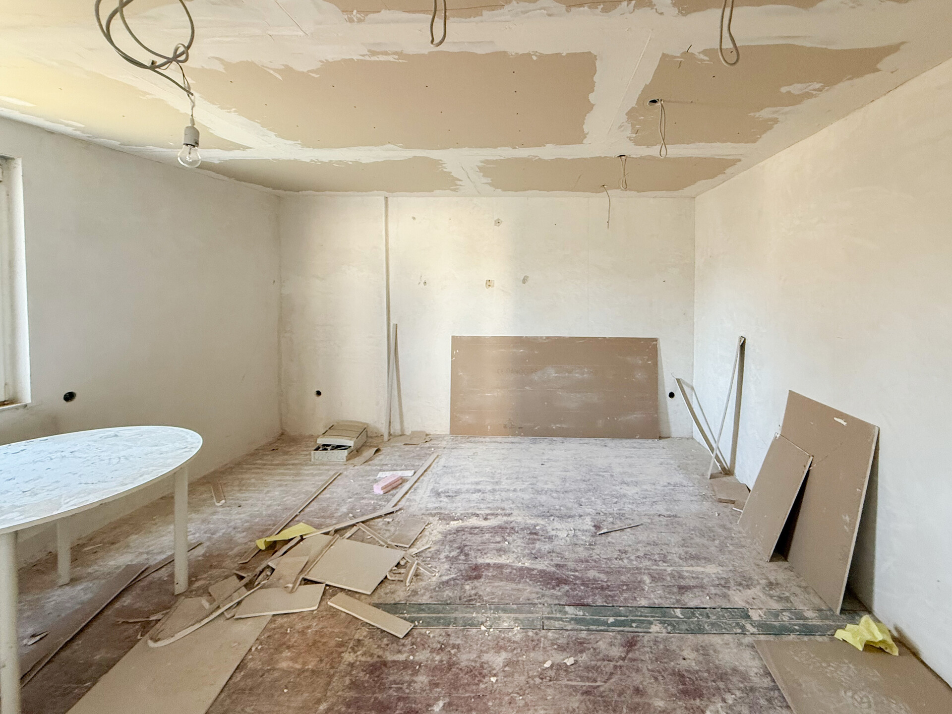 Bei dieser Immobilie handelt es sich um ein ehemaliges Bauernhaus aus schätzungsweise 1919, das seit 2022 bereits im Außenbereich saniert wurde. Im Zuge der Sanierung wurden die Fassade, das Dach sowie die Fenster erneuert. Im linken Gebäudebereich befindet sich eine kleine, bezugsbereite Wohnung, bestehend aus Küche, Wohnzimmer, Duschbad und Schlafzimmer. Der Innenbereich des rechten Gebäudeteils befindet sich im entkernten Zustand. Sämtliche Innenausbauten wurden entfernt, das Gebäude präsentiert sich im Rohbauzustand mit freigelegten Wänden, Decken, Böden. Erste Arbeiten an der Elektrik wurden bereits begonnen, jedoch noch nicht abgeschlossen. Die Elektrioverteilung im OG wurde komplett verlegt. Es bietet vielfältige Ausbaureserven zur individuellen Gestaltung von zusätzlichem Wohnraum. Ursprünglich war der Ausbau zu einem Mehrfamilienhaus mit 2 weiteren Einheiten vorgesehen, wodurch sich das Objekt besonders für handwerklich versierte Käufer oder Investoren eignet, die den verbleibenden Sanierungsaufwand bewusst einkalkulieren. Nach Fertigstellung könnte eine Wohnfläche von schätzungsweise 350 m² erzielt werden.