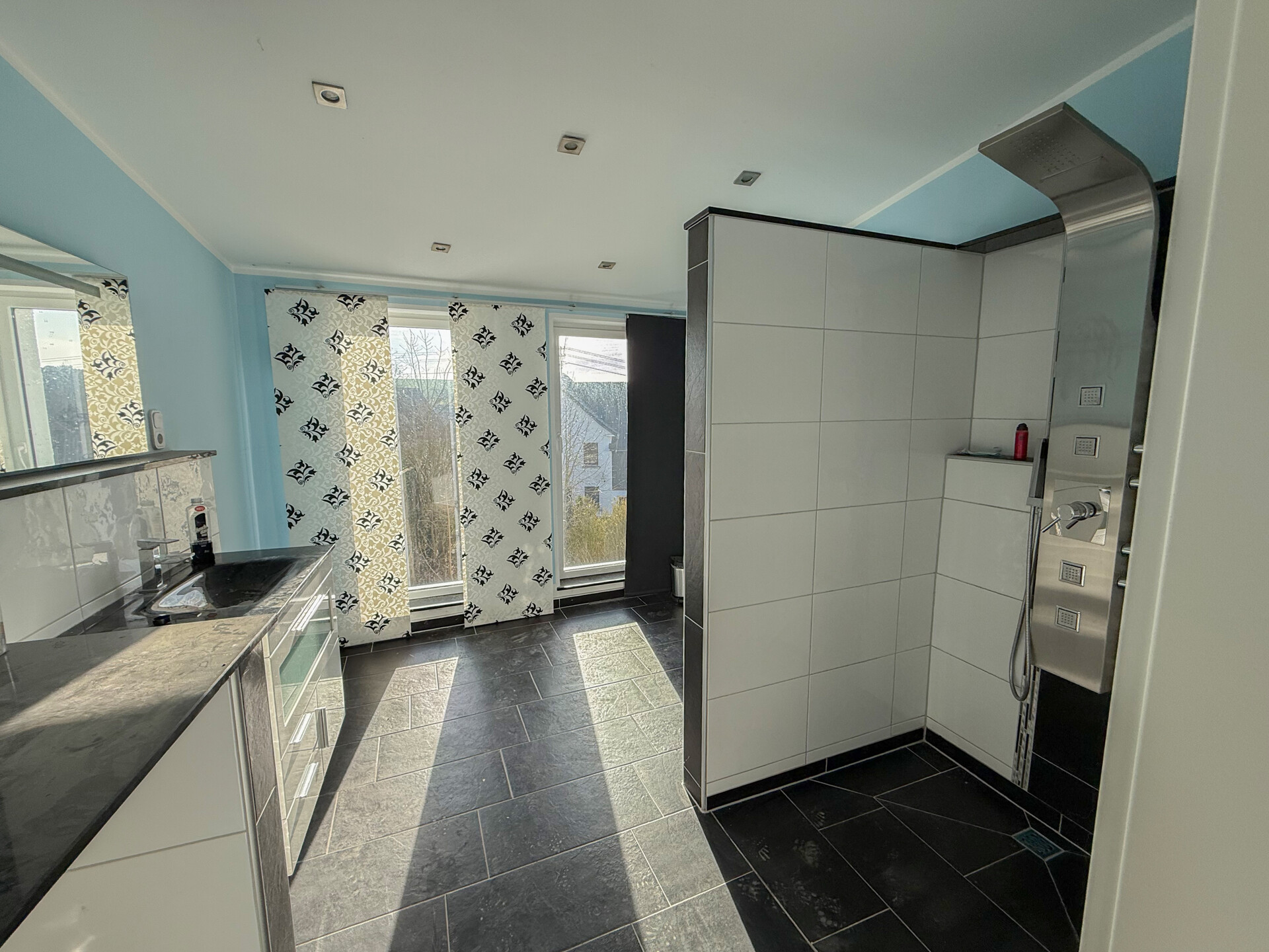 - Badausstattung: Dusche