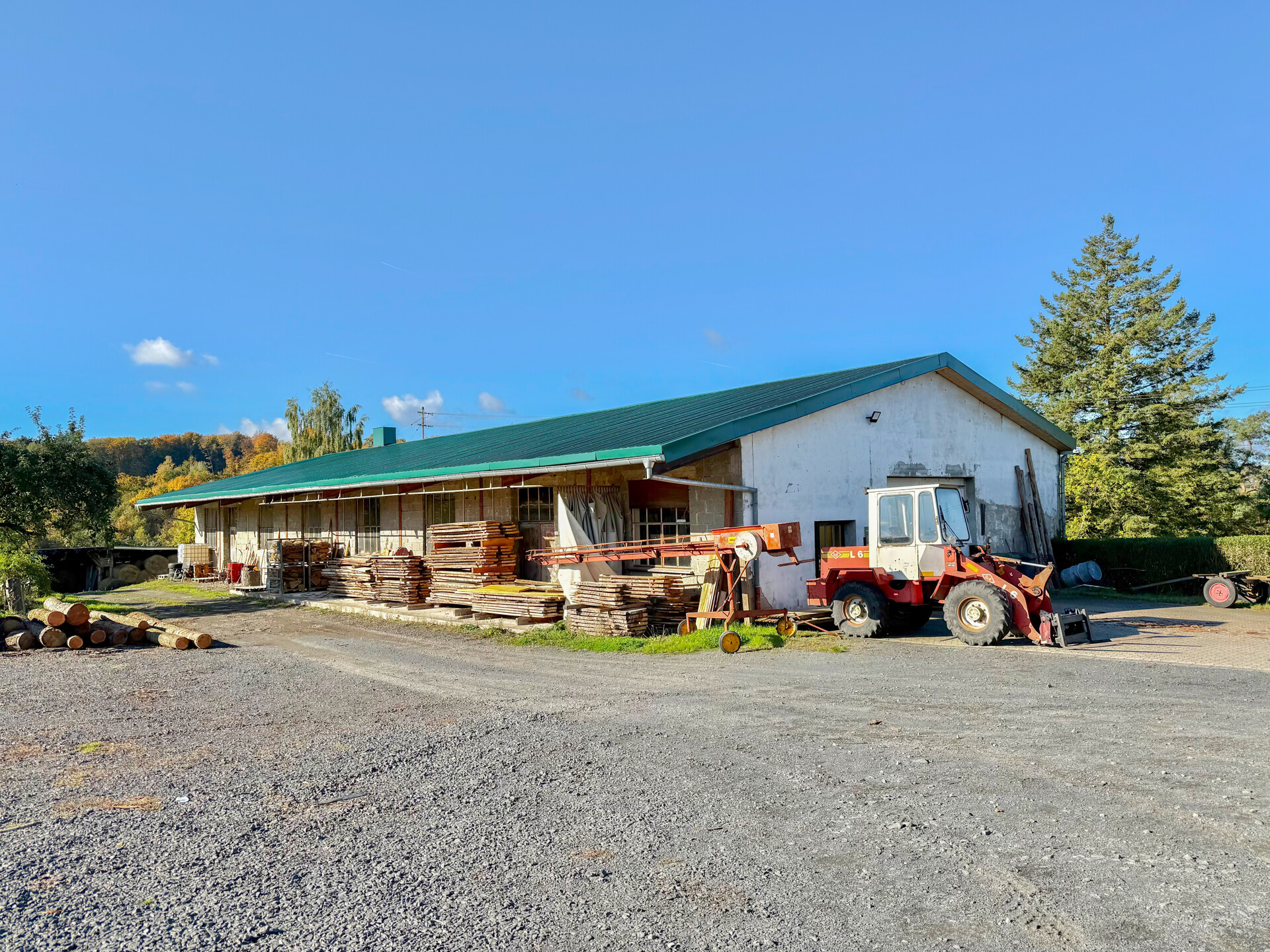 Diese massiv errichtete Gewerbehalle verfügt über eine überdachte Holzlagerfläche von 48 m², ein Schwingtor mit 3 m Höhe und eine Hallenhöhe von 6 m, wodurch auch das Befahren mit größeren Fahrzeugen möglich ist. Zusätzlich steht ein Lagerplatz von ca. 1.000 m² zur Verfügung.
