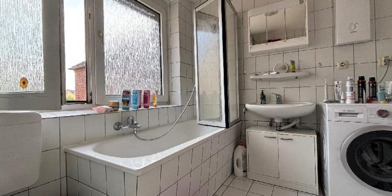 - Badausstattung: Dusche, Badewanne, Fenster im Badezimmer