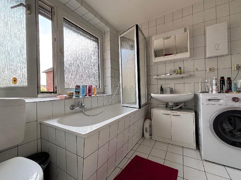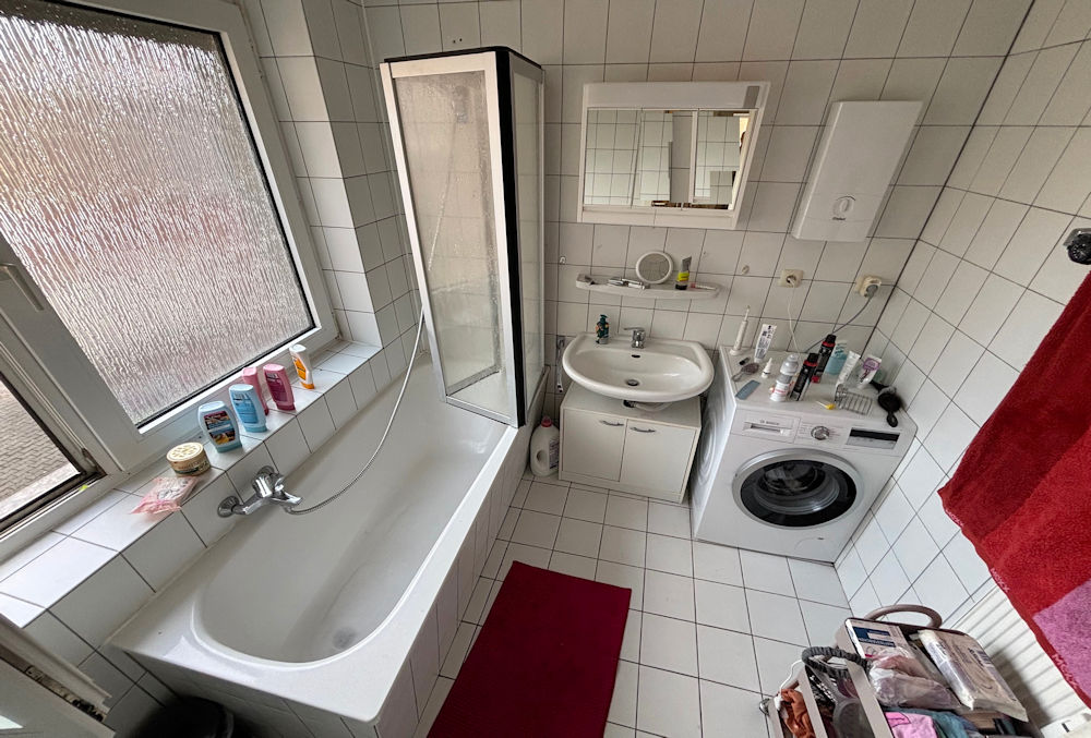- Badausstattung: Dusche, Badewanne, Fenster im Badezimmer