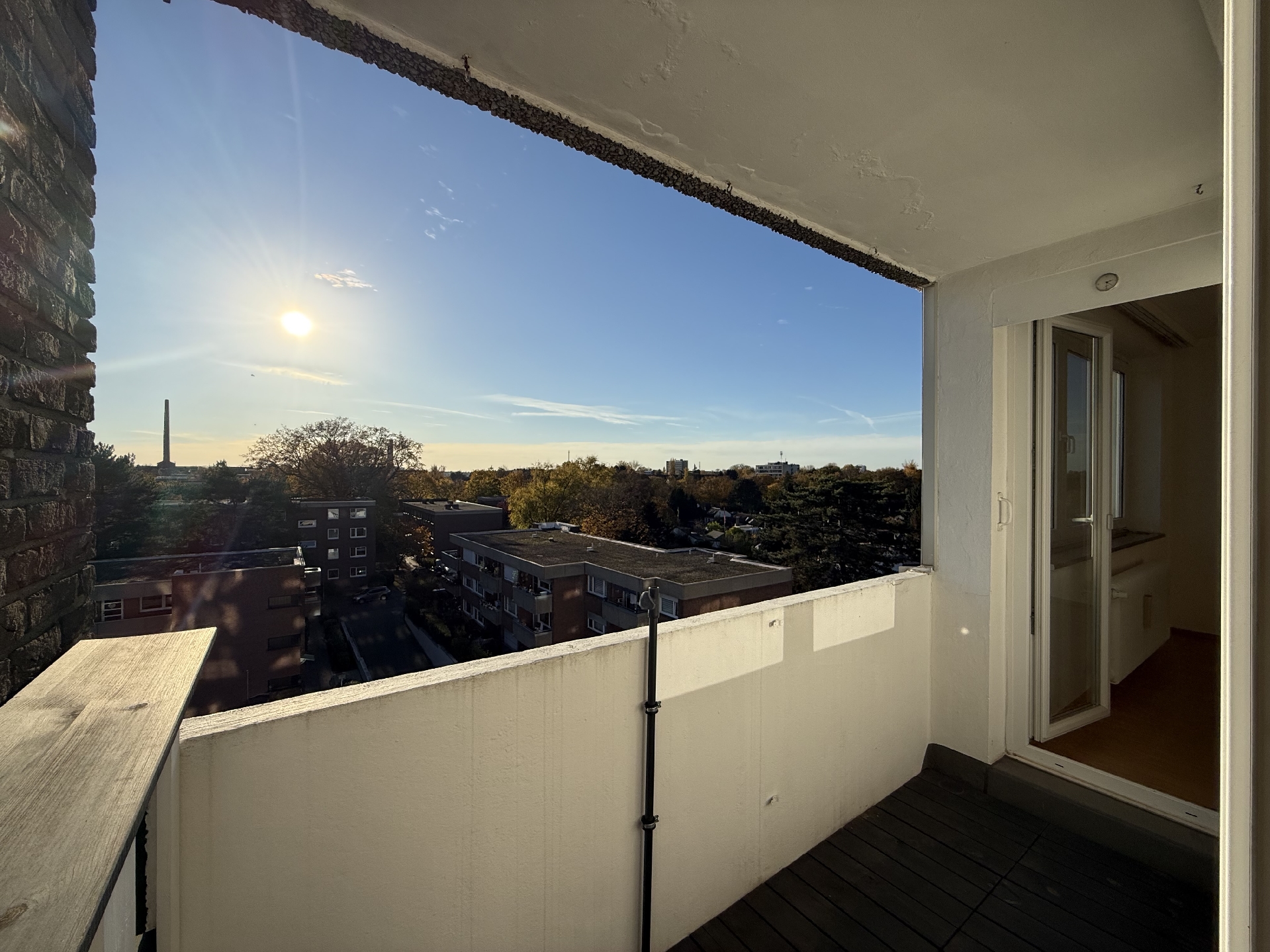 Bereits beim Betreten des Grundstücks empfängt Sie ein äußerst gepflegtes und durchdachtes Erscheinungsbild dieser Immobilie. Die neue Haustür- und Klingelanlage des ursprünglich um 1973 errichteten Gebäudes vermittelt ein modernes Wohngefühl. Saubere Mülltonnenanlagen, Abstellmöglichkeiten für Fahrräder und eine Rampe, mithilfe welcher Sie die 5 Stufen zum Haus auch barrierefrei überwinden können, bilden den ersten Eindruck. Ihre Wohnung im 5. Obergeschoss erreichen Sie sowohl über das helle und breite Treppenhaus, als auch mit dem kürzlich erneuerten Aufzug. Auf Ihrer Etage führt ein separater Flur für 4 Wohnungen Sie zu Ihrem Eingang.