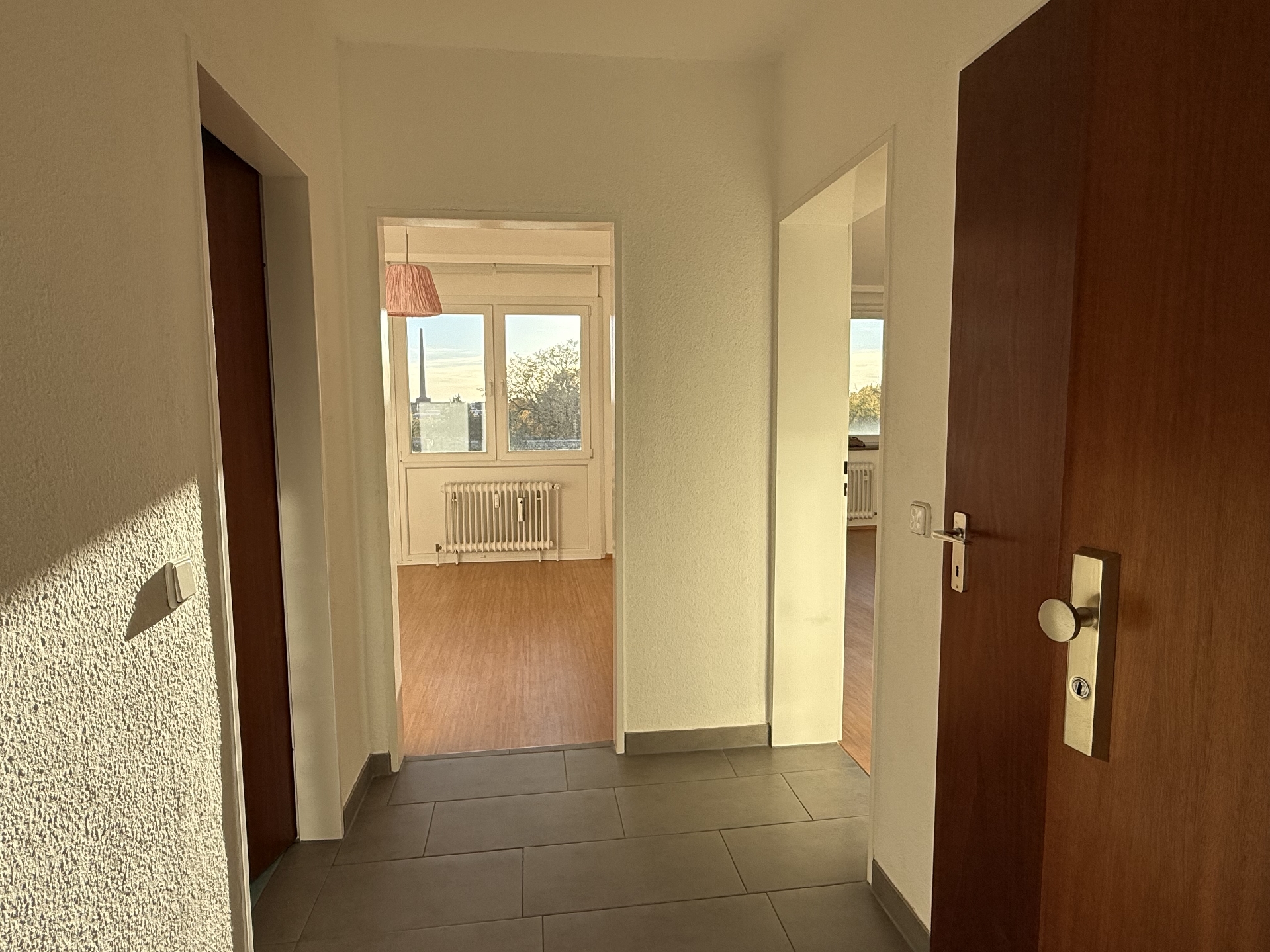 Über einen modernen Flur, welcher Platz für eine kleine Garderobe bietet, gelangen Sie in alle Räume. Zur Linken befindet sich das um 2013 sanierte, innenliegende Wannenbad. Vor Kopf erreichen Sie das helle Schlafzimmer, mit direktem Zugang zur süd-westlich ausgerichteten Loggia. Zur Rechten liegen ein praktischer Abstellraum sowie das Wohnzimmer mit offener Küche. Selbstverständlich bietet auch das Wohnzimmer einen direkten Zugang zur Loggia.