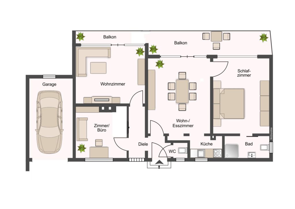 Hinweis: Einzelne Bilder wurden digital bzw. KI-gestützt bearbeitet (z. B. Entfernen von Einrichtungsgegenständen). Bauliche Gegebenheiten und Raumaufteilung bleiben unverändert.