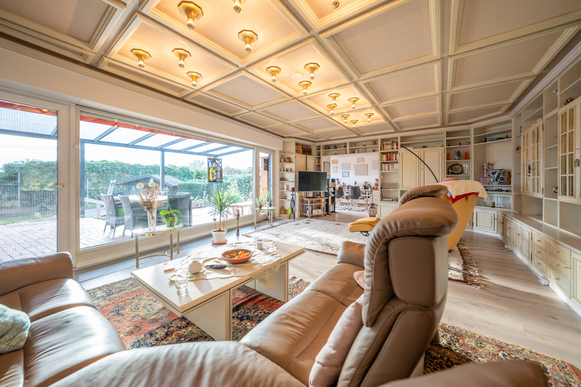 – Großzügiger Wohnbereich mit direktem Zugang zur überdachten Terrasse und in den gepflegten Garten