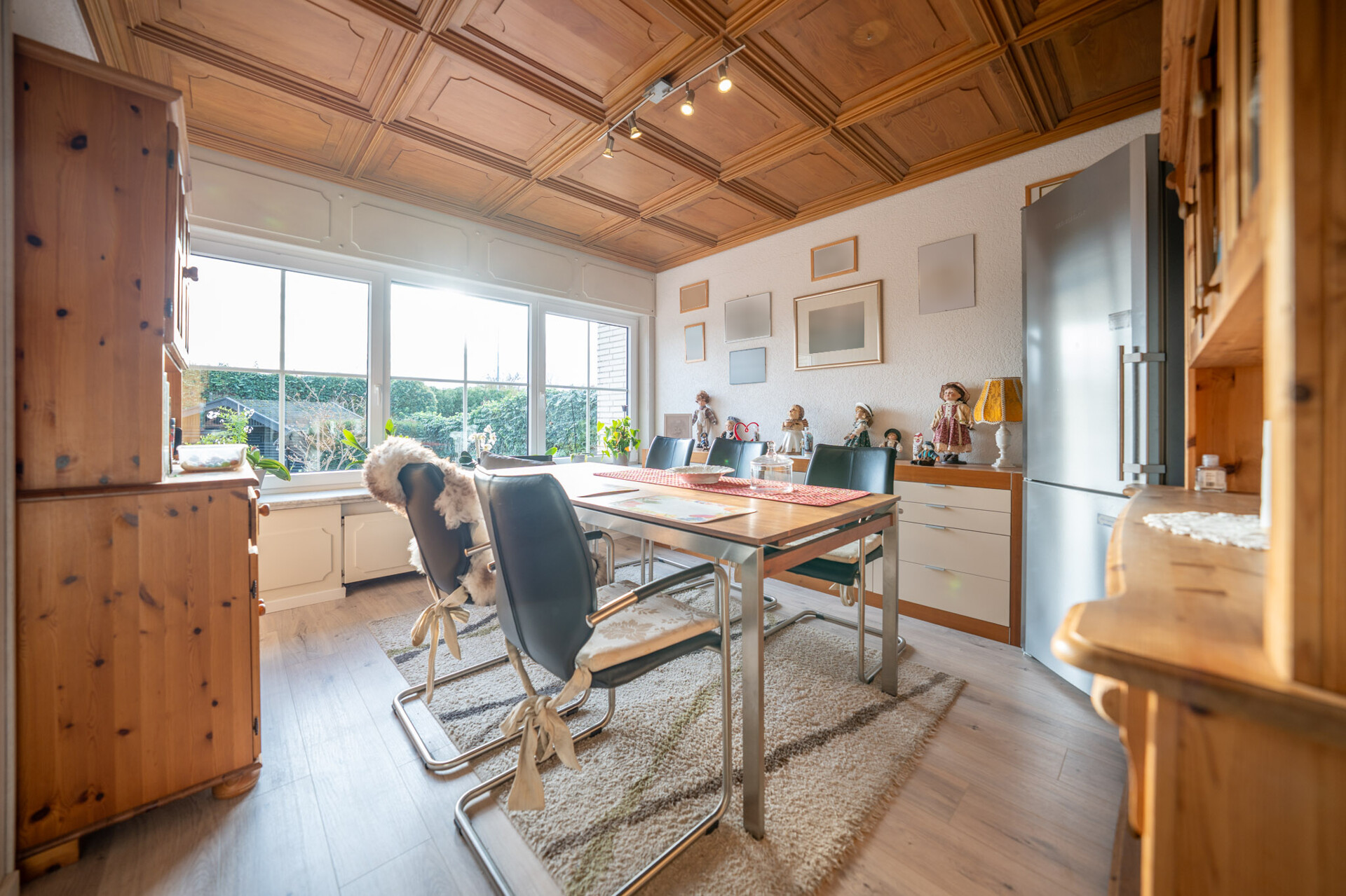 – Küche mit angrenzendem Esszimmer – lichtdurchflutet, mit Blick ins Grüne, perfekt für gesellige Mahlzeiten