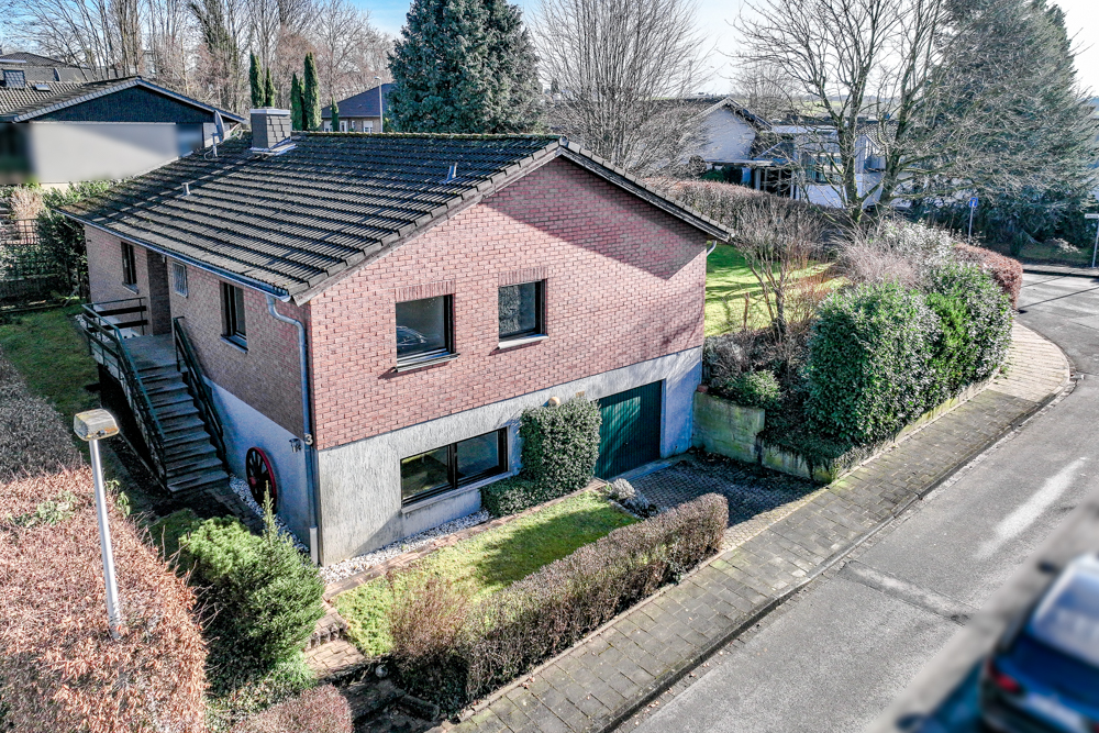 Das zum Verkauf stehende Einfamilienhaus befindet sich auf dem Eck-Grundstück der Straße ‚Am Grünen Berg‘ und dem ‚Ahornweg‘. Es umfasst ein massiv errichtetes Souterrain-Geschoss und die Hauptwohnetage mit angrenzendem Garten.