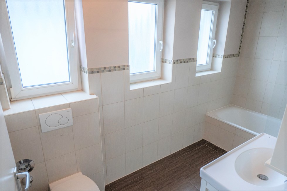 - Badausstattung: Badewanne, Fenster im Badezimmer