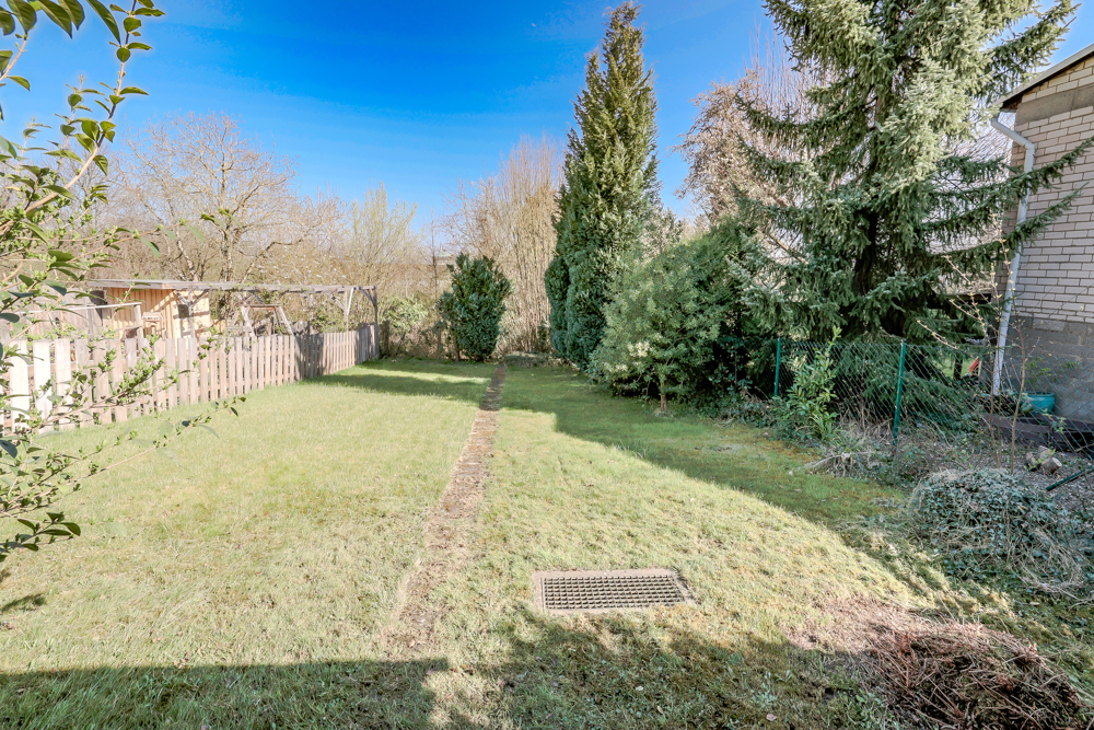 Die Nutzfläche beträgt ca. 109 m², zusätzlich ist das Gebäude vollständig unterkellert, was weitere praktische Flächen für Hauswirtschaft, Lagerung oder Hobbyräume zur Verfügung stellt. Die Substanz des Hauses ist solide und bietet eine verlässliche Basis für zukünftige Modernisierungsmaßnahmen oder individuelle Anpassungen.