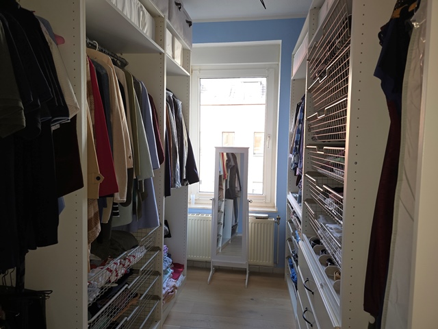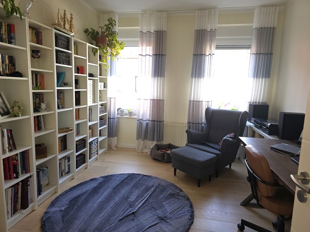 Im 1.OG überzeugt besonders die durchdachte Raumgestaltung: Das Schlafzimmer, ein Ankleidezimmer sowie das Badezimmer sind direkt miteinander verbunden und schaffen eine komfortable Wohnsuite. Zusätzlich gibt es ein Gäste-WC. Es stehen 3 weitere Räume zur Verfügung, ein Raum wird als Büro genutzt. Außer Nasszellen, komplett Parkettböden.