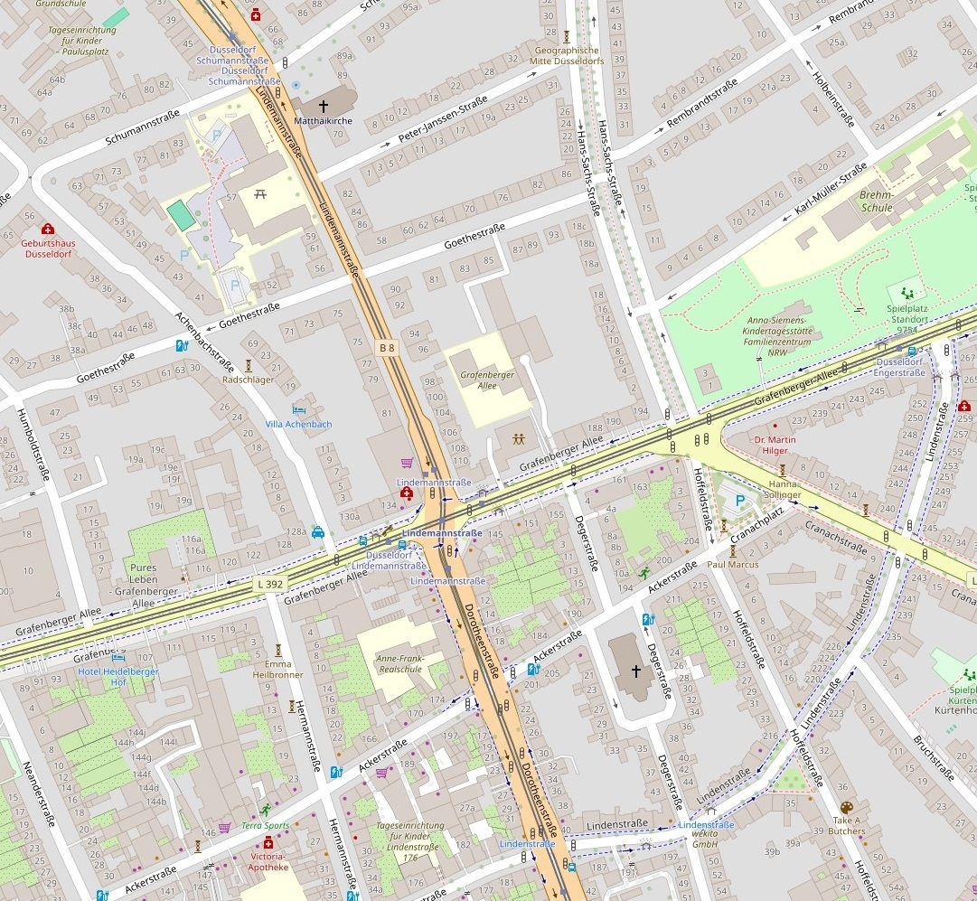 Die Autobahn A46 erreicht man über die Anschlussstelle Düsseldorf Worringer Straße in ca. 3 km. Die A52 Anschlussstelle Düsseldorf Rath ist etwa 5 km entfernt.