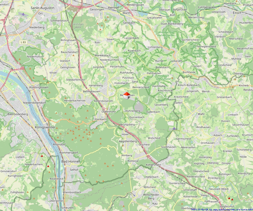 Die Wohnung befindet sich in 53639 Königswinter im idyllischen Ortsteil Berghausen, in einer besonders ruhigen und naturnahen Höhenlage oberhalb des beliebten Ortsteils Oberpleis. Die Umgebung ist geprägt von Wiesen, sanften Hügeln und einem herrlichen Blick in Richtung des Siebengebirge sowie zum markanten Oelberg.