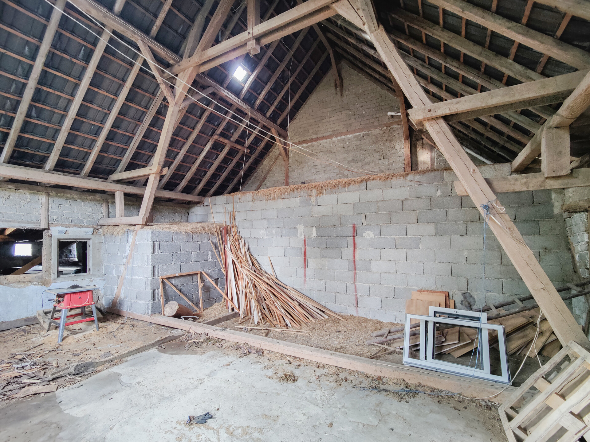 An das Wohnhaus grenzt ein großes Stallgebäude mit darüberliegender Scheune. Den Stall erreicht man auf kurzem Wege über einen Gang mit weiteren Lagerräumen. Hier befindet sich auch der Zugang zum alten Bruchsteinkeller.