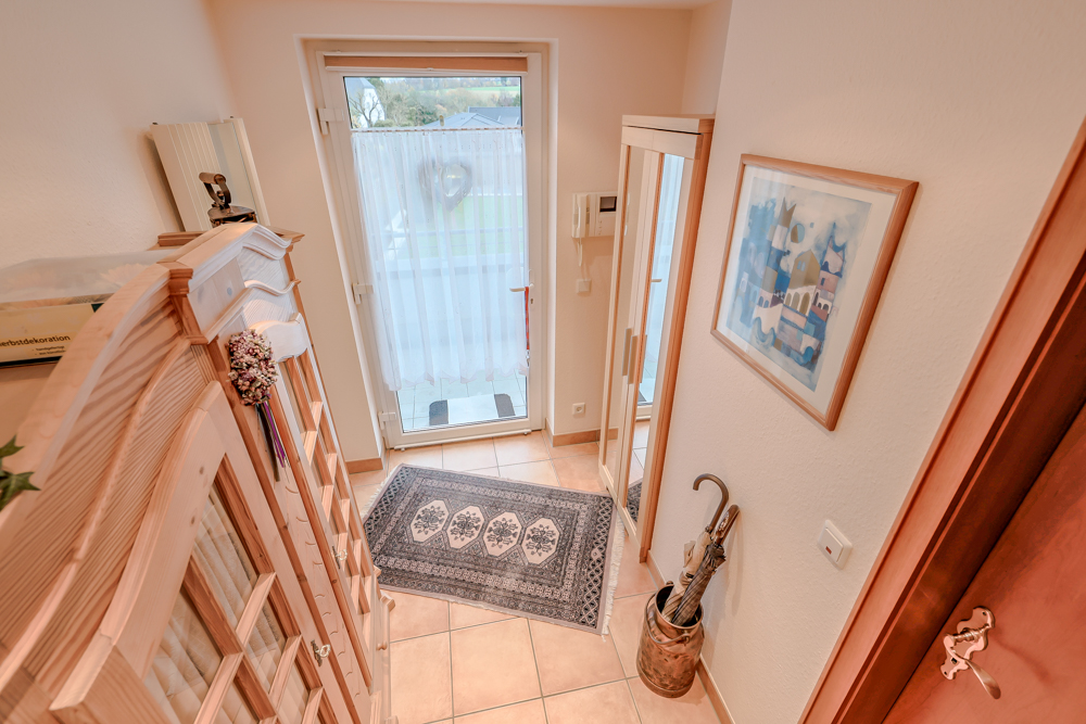 Nach betreten der Wohnung führt Sie die Diele rechts in ein Zimmer, was als Schlaf- oder Arbeitszimmer dienen könnte. Bevor Sie geradeaus in das Wohnzimmer gelangen, finden Sie auf der linken Seite der Diele das Gäste-WC – top gepflegt und in zeitgemäßem Zustand.