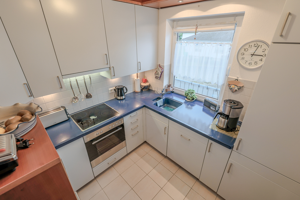 Als Highlight kann zweifelsfrei der helle und zugleich großzügige Wohn- und Essbereich erwähnt werden. Eine Schiebetüre mit großen Fensterflächen lässt viel Licht herein und bietet außerdem den Zugang zum rückwärtigen Balkon. Dieser ist nach Westen ausgerichtet und groß genug, um hier mit Freunden und einem Glas Wein die Sonne bis in die späten Abendstunden zu genießen.