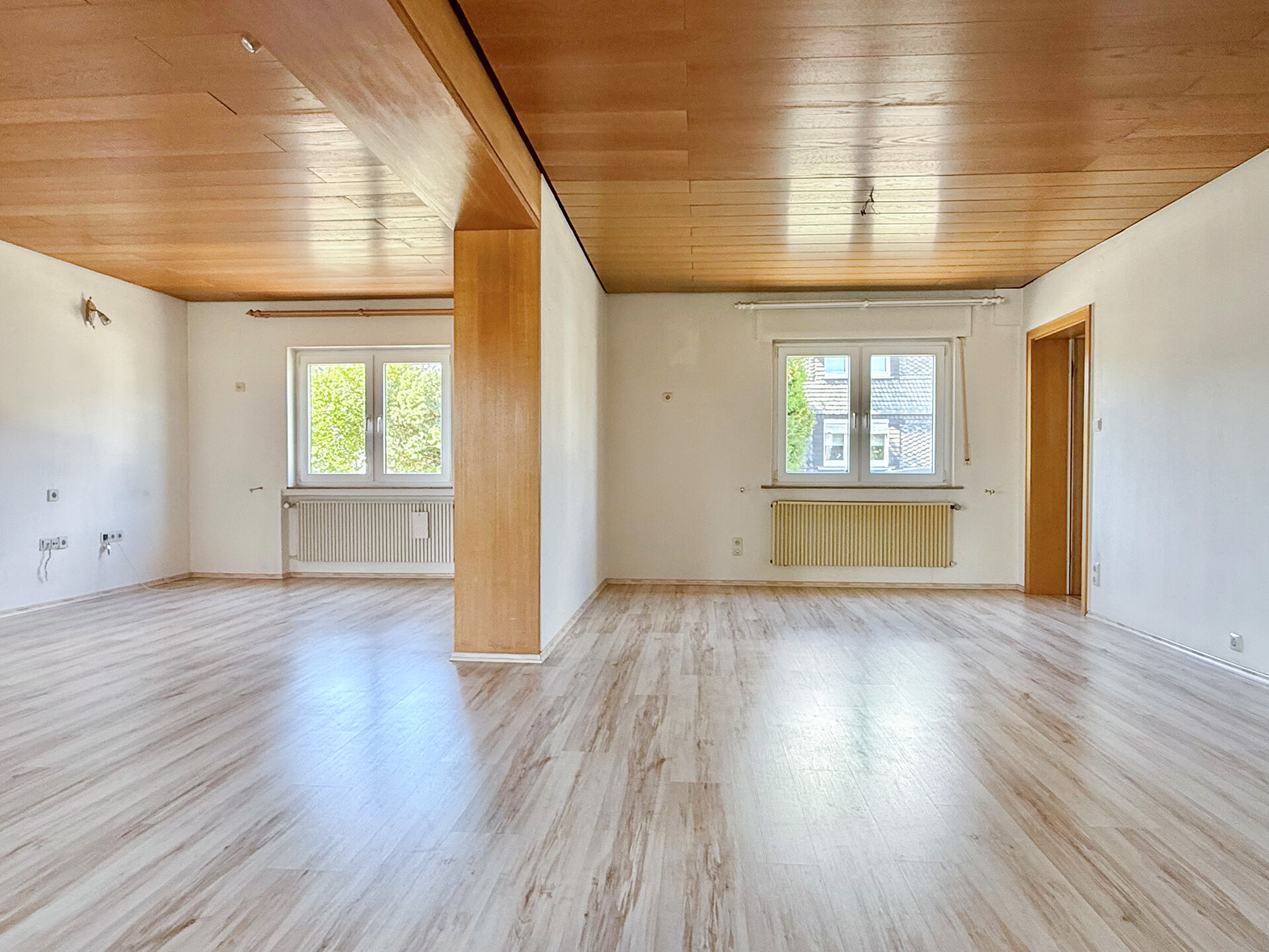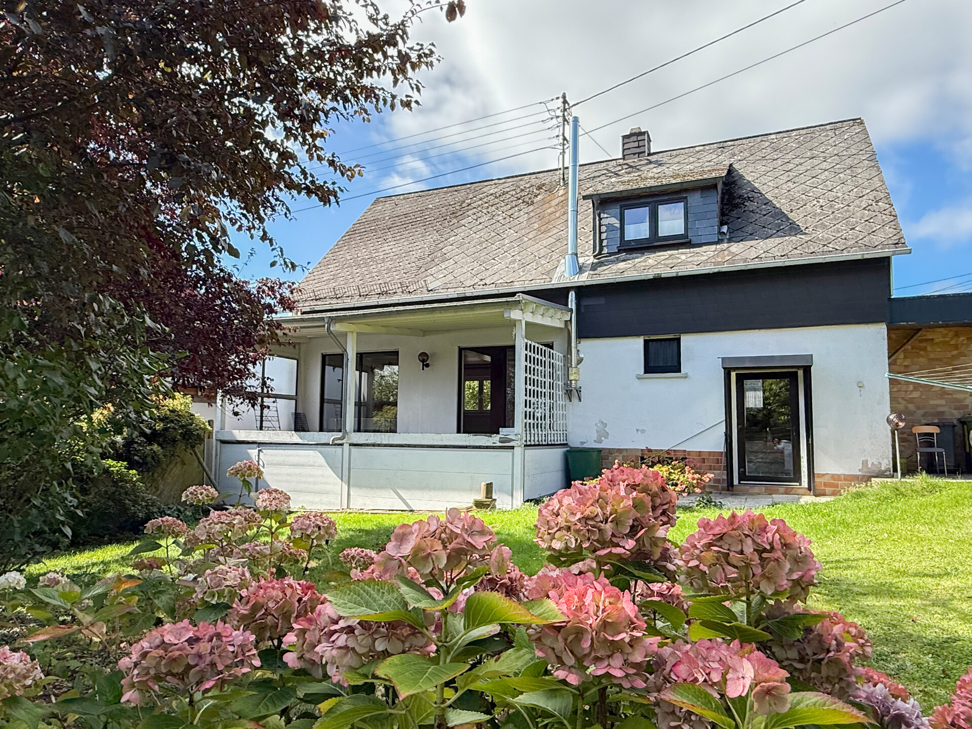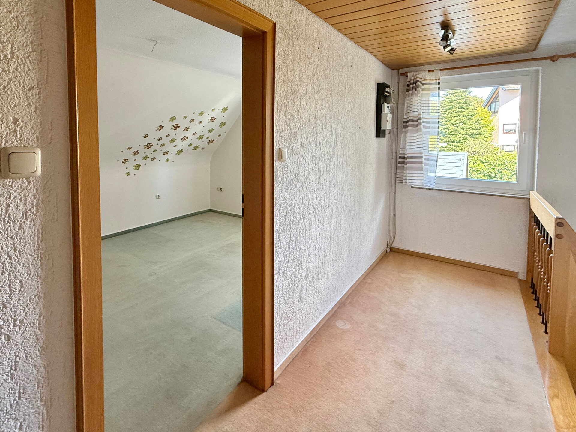 Dieses gepflegte Einfamilienhaus aus ca. 1975 befindet sich auf einem ca. 475 m² großen Grundstück in ruhiger Wohnlage – ideal für Familien, Paare oder alle, die viel Platz zum Leben und Gestalten suchen. Das Haus überzeugt durch: eine solide, massive Bauweise, eine durchdachte Raumaufteilung, seine vollständige Unterkellerung und jede Menge Wohnkomfort! Highlight des Hauses ist der großzügige Wohn- und Essbereich mit Kaminofen, der durch große Fensterflächen lichtdurchflutet und einladend wirkt. Von hier aus gelangen Sie direkt auf die überdachte Terrasse – ein perfekter Ort für entspannte Stunden mit Blick in den gepflegten Garten. Im Dachgeschoss befinden sich die Schlafzimmer. Zwei hintereinanderliegende Räume bieten flexible Nutzungsmöglichkeiten: ob als Elternschlafzimmer mit Ankleide, Kinderzimmer, Home-Office oder gemütlicher Rückzugsort – hier haben Sie Raum für Ihre Ideen! Beide Zimmer verfügen über einen Zugang zur Loggia mit herrlichem Fernblick. Ein zweites Bad im Obergeschoss sorgt für zusätzlichen Komfort. Im Kellergeschoss erwarten Sie: ein praktischer Abstellraum, eine Waschküche, der Heizungsraum und ein vielseitig nutzbarer Hobbyraum. Zusätzlich zur Garage stehen ein Carport mit 2 Stellplätzen, sowie ein weiterer Außenstellplatz zur Verfügung.