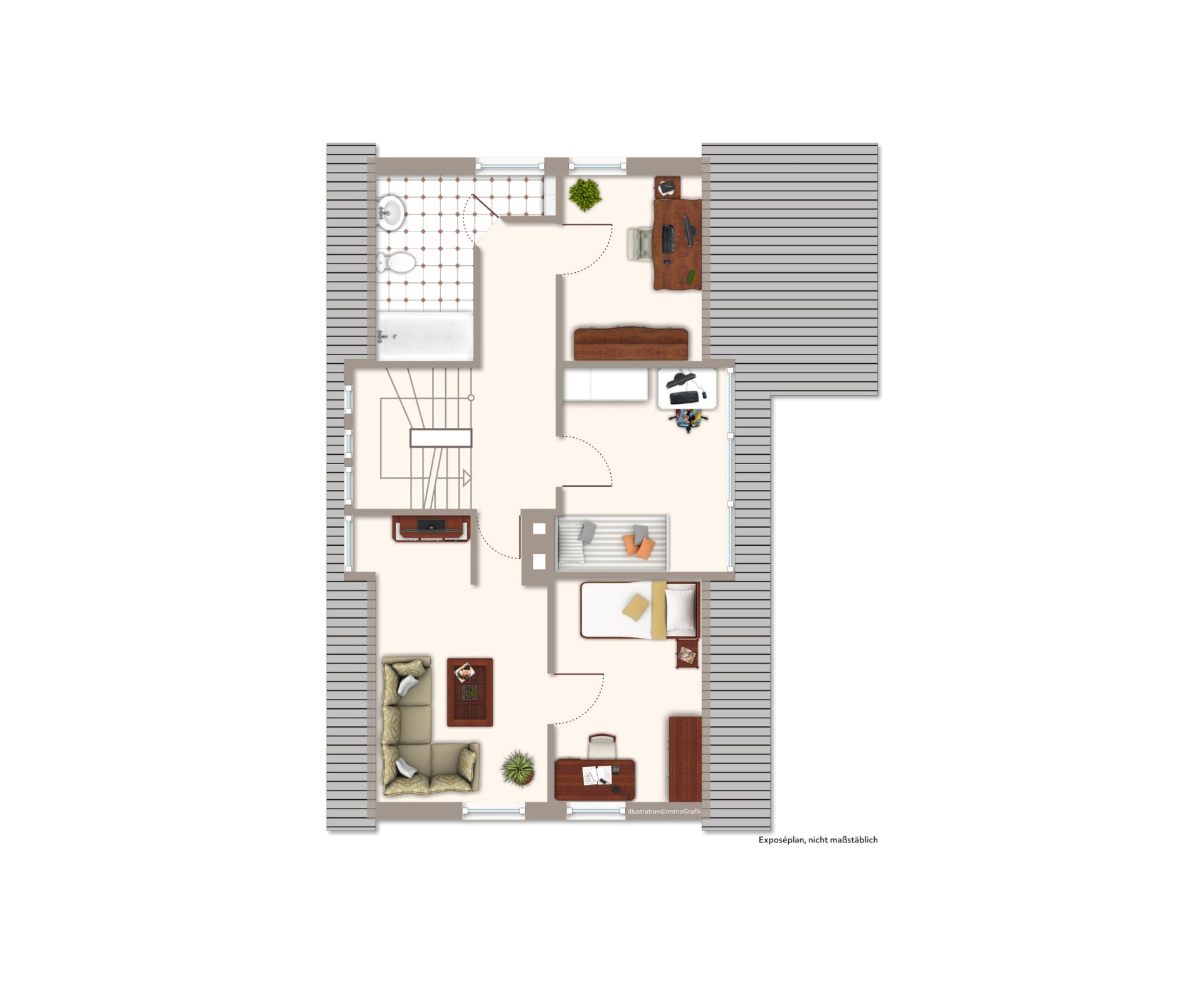 - Badausstattung: Dusche, Badewanne