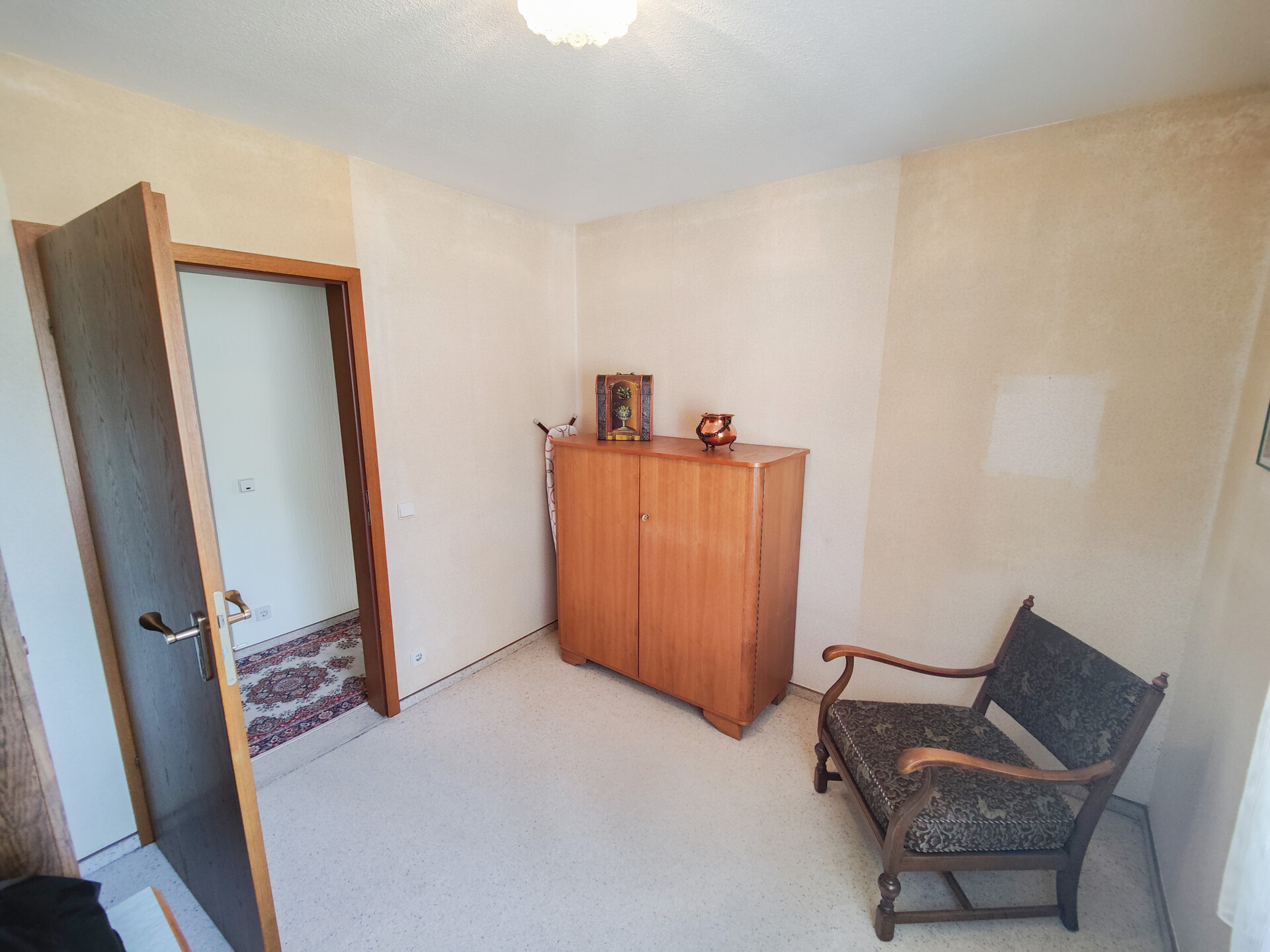 Im Inneren präsentiert sich die Immobilie in einem gepflegten, jedoch renovierungsbedürftigen Zustand und bietet damit viel Potenzial für eine individuelle Neugestaltung.