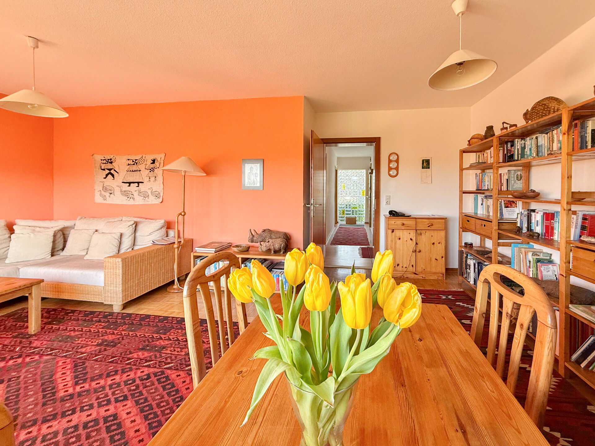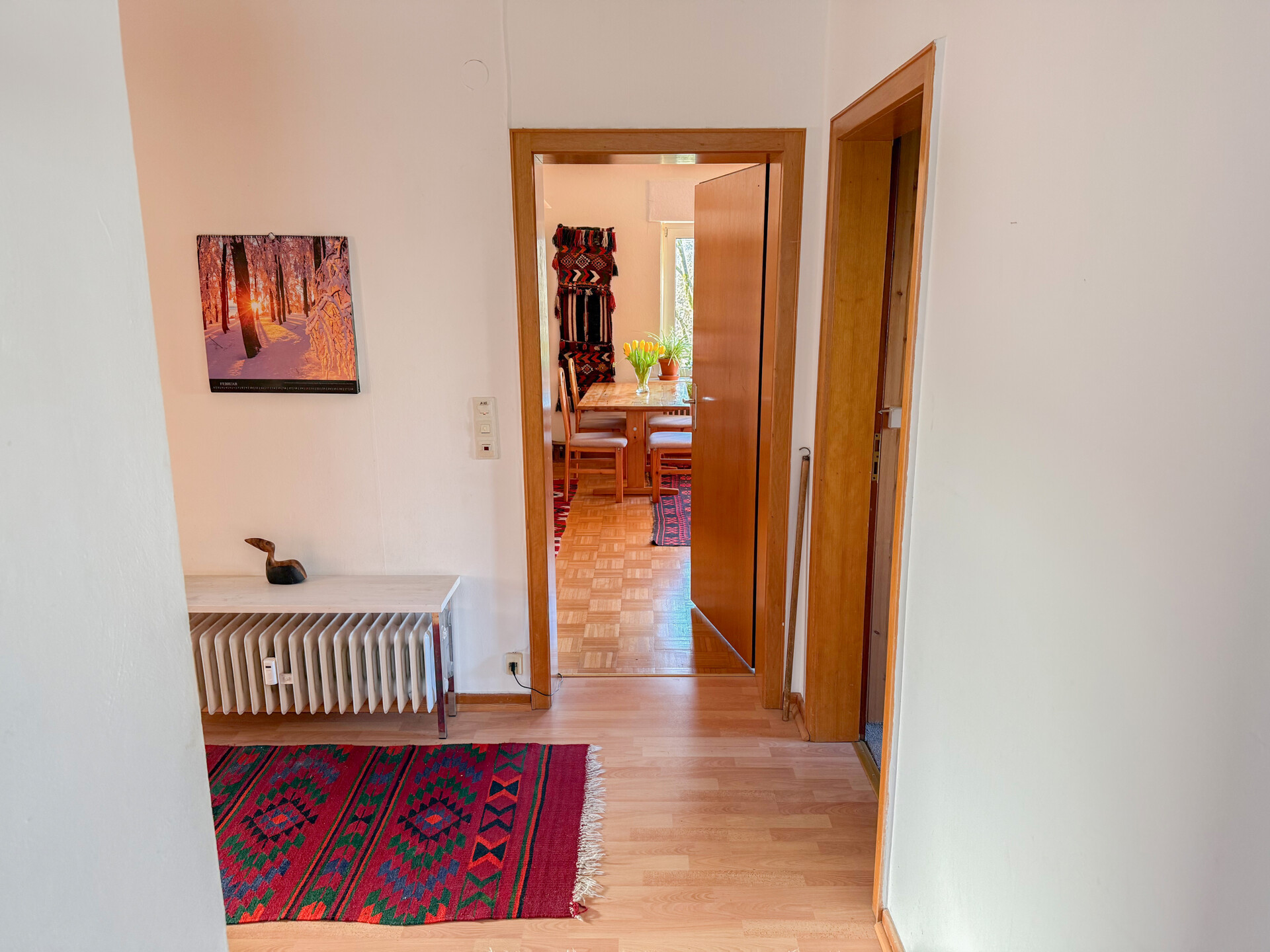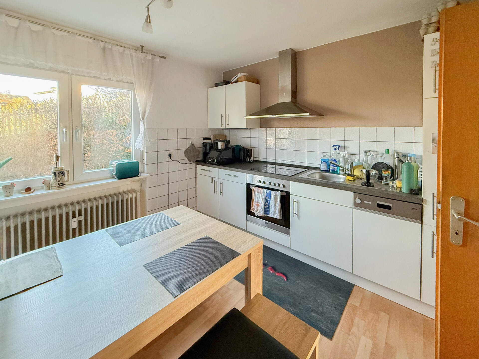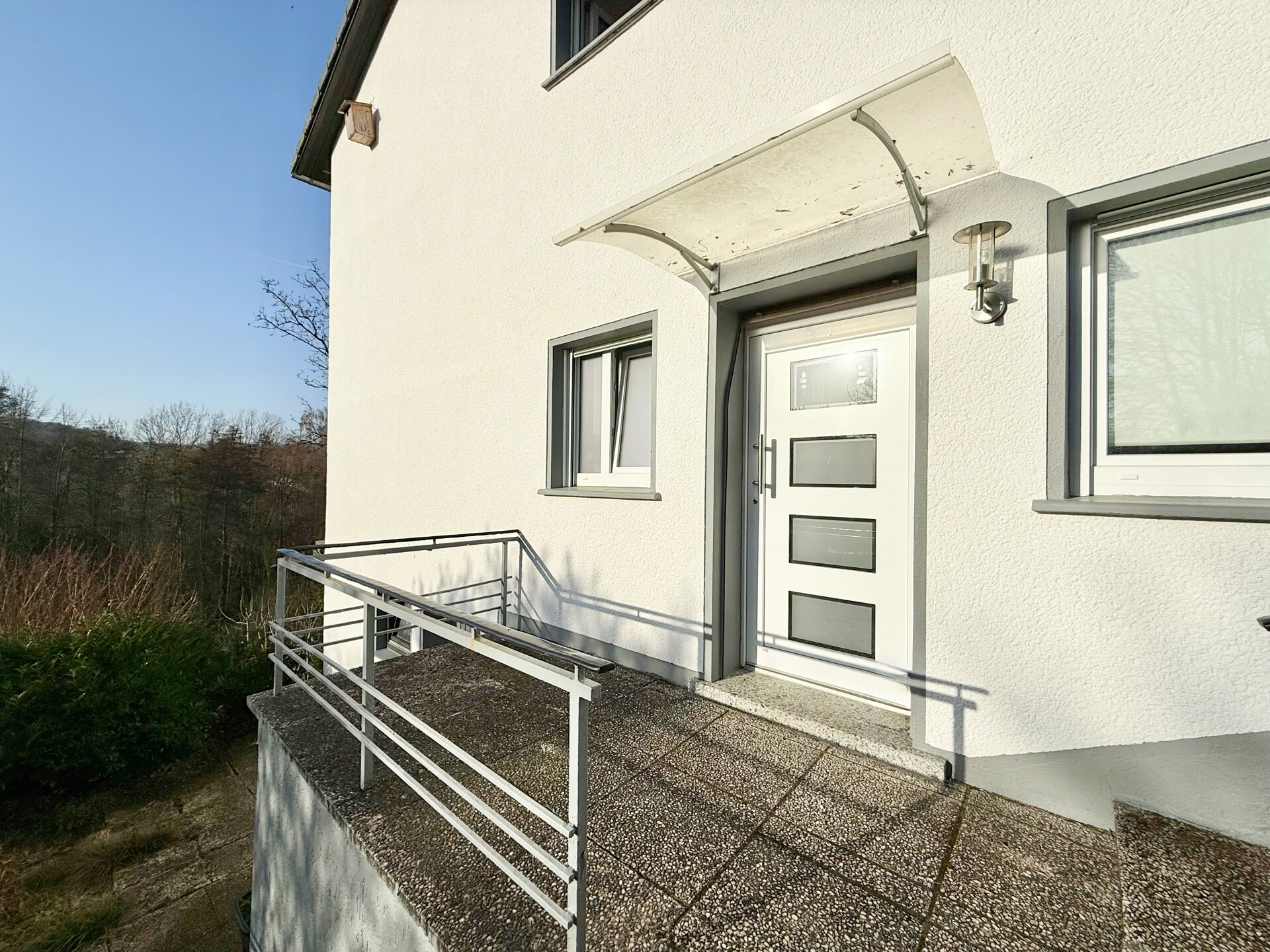 Dieses Zweifamilienhaus aus ca. 1965 befindet sich auf einem großzügigen Grundstück von ca. 908 m² in Hanglage mit Gartenanteil. Als letztes Haus in der Zuwegung gelegen, bietet die Immobilie eine besonders ruhige Wohnlage. Durch die Hanglage befinden sich unterhalb des Grundstücks keine weiteren Häuser. Dadurch ergibt sich eine freie Sicht. Die Immobilie bietet zwei Wohneinheiten und eignet sich sowohl für Mehrgenrationenwohnen als auch zur Teilvermietung. Die Erdgeschosswohnung verfügt über 4ZKB (ca. 82 m²) sowie über eine zusätzliche Gästetoilette. Neben zwei Schlafzimmern steht ein weiteres Zimmer zur Nutzung als Büro oder Gästezimmer zur Verfügung. Vom Wohnzimmer aus genießen Sie den herrlichen Blick ins Grüne. Die Einbauküche wurde 2018 erneuert. Der Dachboden ist über eine ausklappbare Treppe erreichbar und bietet Zugang zur Loggia. Über das Treppenhaus gelangt man zudem ins Untergeschoss. Dort befinden sich eine weitere Wohneinheit mit 2ZKB /ca. 74 m²) sowie zusätzliche Kellerflächen. Das Wohnzimmer bietet Zugang zu einem großen Balkon. Die Einbauküche aus dem Jahr 2016 verbleibt auch hier im Objekt. Eine Garage mit manuellem Tor und ein Freiplatz befinden sich direkt vor dem Haus.