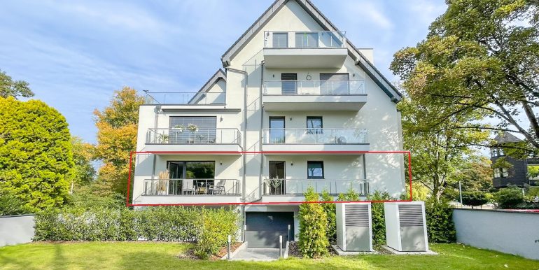Der großzügige Wohn- und Essbereich mit maßgefertigter Einbauküche ist das Herzstück der Wohnung und bietet direkten Zugang zu einem der beiden Balkone ideal, um den Blick ins Grüne und die ruhige Umgebung zu genießen. Das Schlafzimmer überzeugt ebenfalls mit Balkonzugang und herrlichem Ausblick. Ein weiteres Zimmer eignet sich perfekt als Kinder-, Gäste- oder Arbeitszimmer.