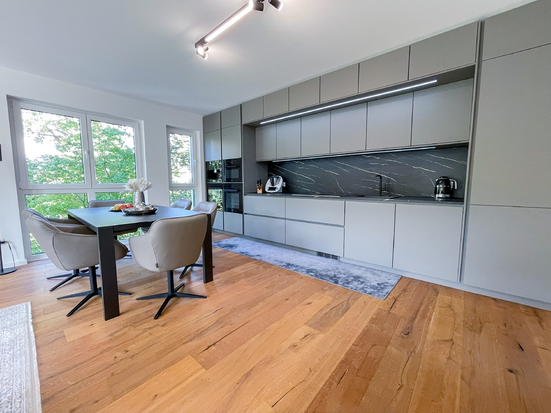 Ein Großteil der stilvollen Möbel sowie die exklusive, maßgefertigte Einbauküche können bei Interesse vom Verkäufer übernommen werden für einen rundum perfekten Einzug ohne Aufwand.