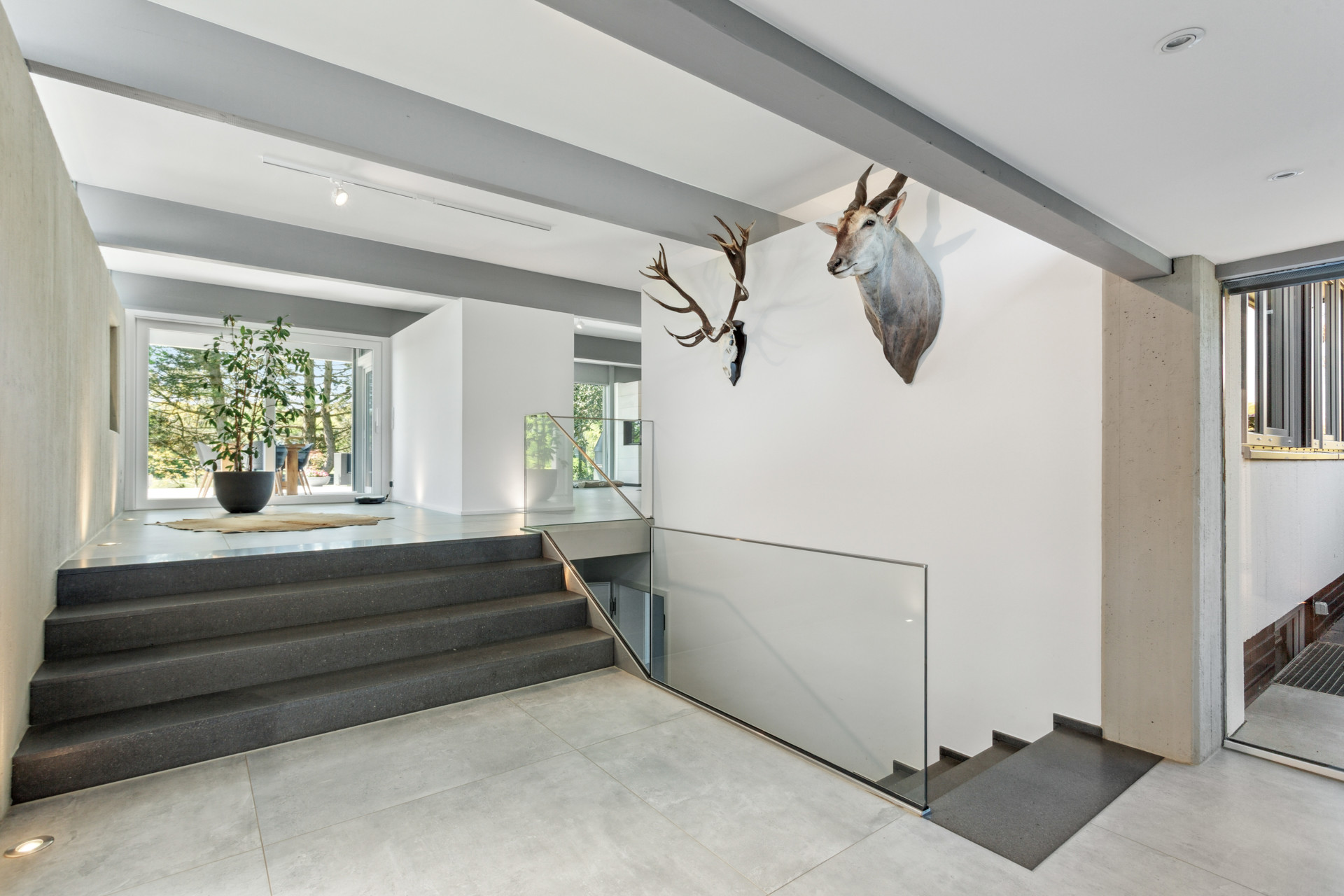 – Teilweise ausgeführte Sichtbetonflächen an der Fassade sowie im Innenbereich