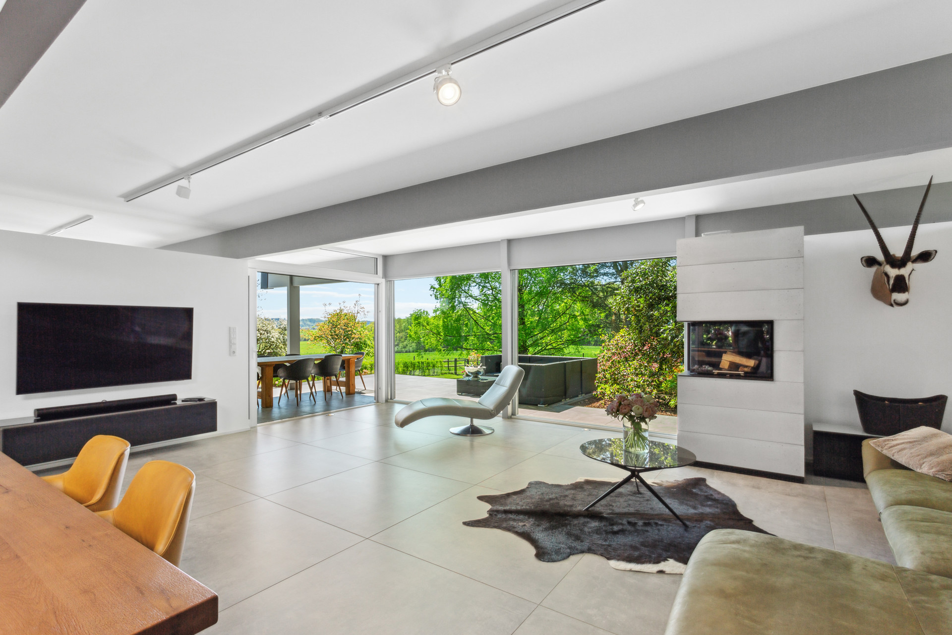 Dieses außergewöhnliche Architektenhaus liegt in einer unverbaubaren Ortsrandlage. Charakteristisch sind die beiden versetzt angeordneten Flachdachbaukörper, die sich harmonisch in die Topografie des nach Süden ausgerichteten Grundstücks einfügen und einen unverstellten Blick in die umliegende Landschaft eröffnen. Großzügige, bodentiefe Drei-Scheiben-Fenster sowie Schiebetürelemente in Kombination mit durchdachten Lichtbändern sorgen aus nahezu jedem Bereich des Hauses für fließende Übergänge nach draußen und ein dauerhaftes Naturerlebnis.