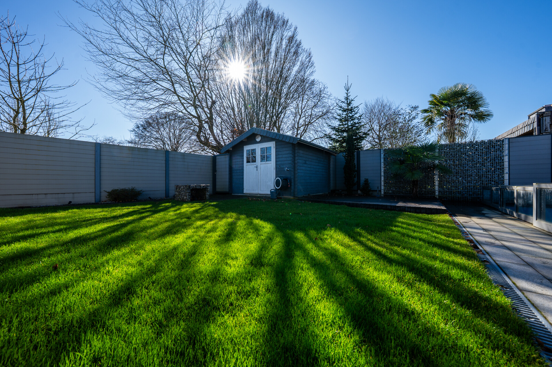 Diese gepflegte Doppelhaushälfte aus dem Jahr 1995 bietet auf ca. 126 m² Wohnfläche modernen Wohnkomfort für die ganze Familie. Im Erdgeschoss erwarten Sie ein heller Wohn- und Essbereich mit angrenzendem Wintergarten, eine moderne Küche und ein Gäste-WC. Das Obergeschoss verfügt über vier Zimmer inklusive Ankleidezimmer und ein Tageslichtbad, während das ausgebaute Dachgeschoss flexiblen Raum für Gäste, Hobby oder Homeoffice bereithält. Das Untergeschoss überzeugt mit einem eigenen Wellnessbereich samt Sauna, und im Außenbereich lädt der Garten mit einem beheizten Außenpool zur Entspannung ein. Damit die Gartenpflege mühelos gelingt, sorgen eine über einen eigenen Brunnen gespeiste Bewässerungsanlage sowie zwei Mähroboter für stets gepflegte Grünflächen.