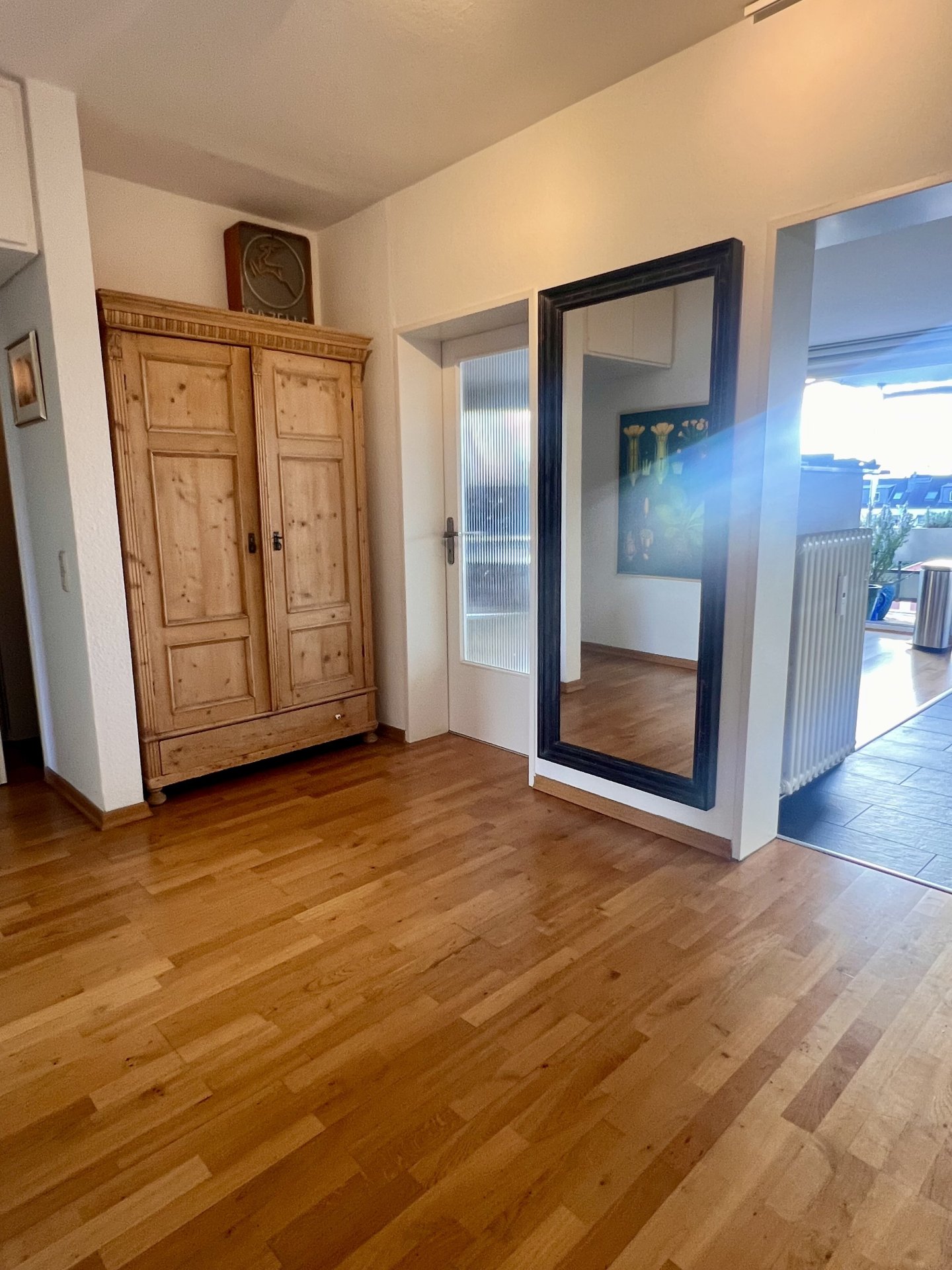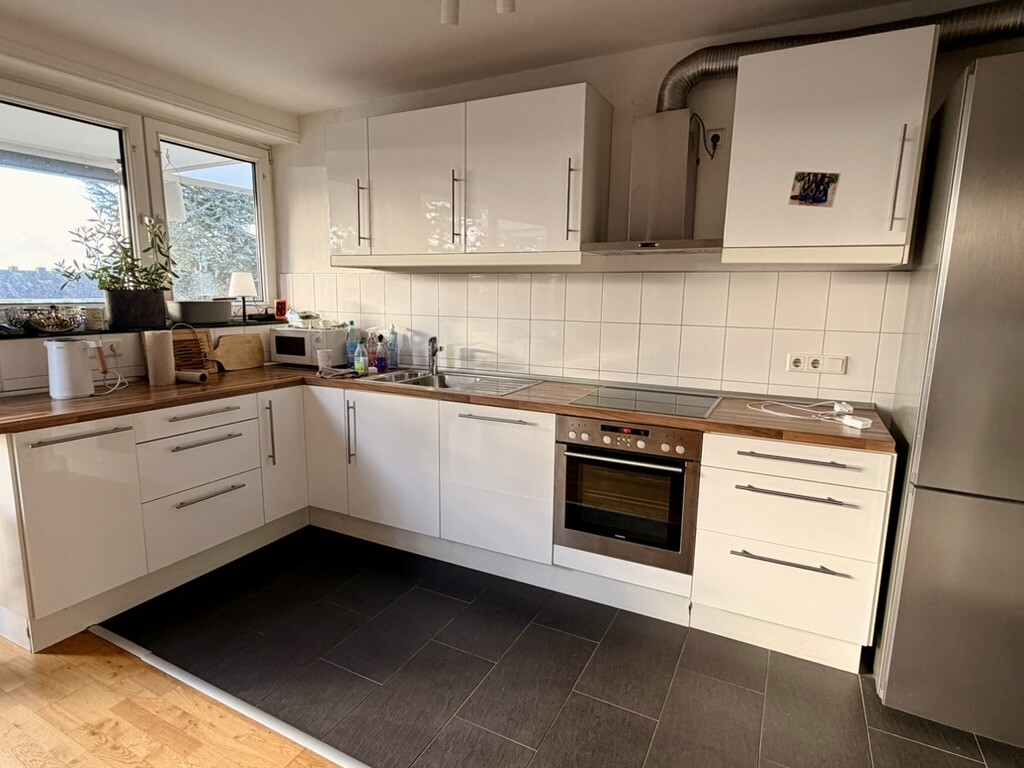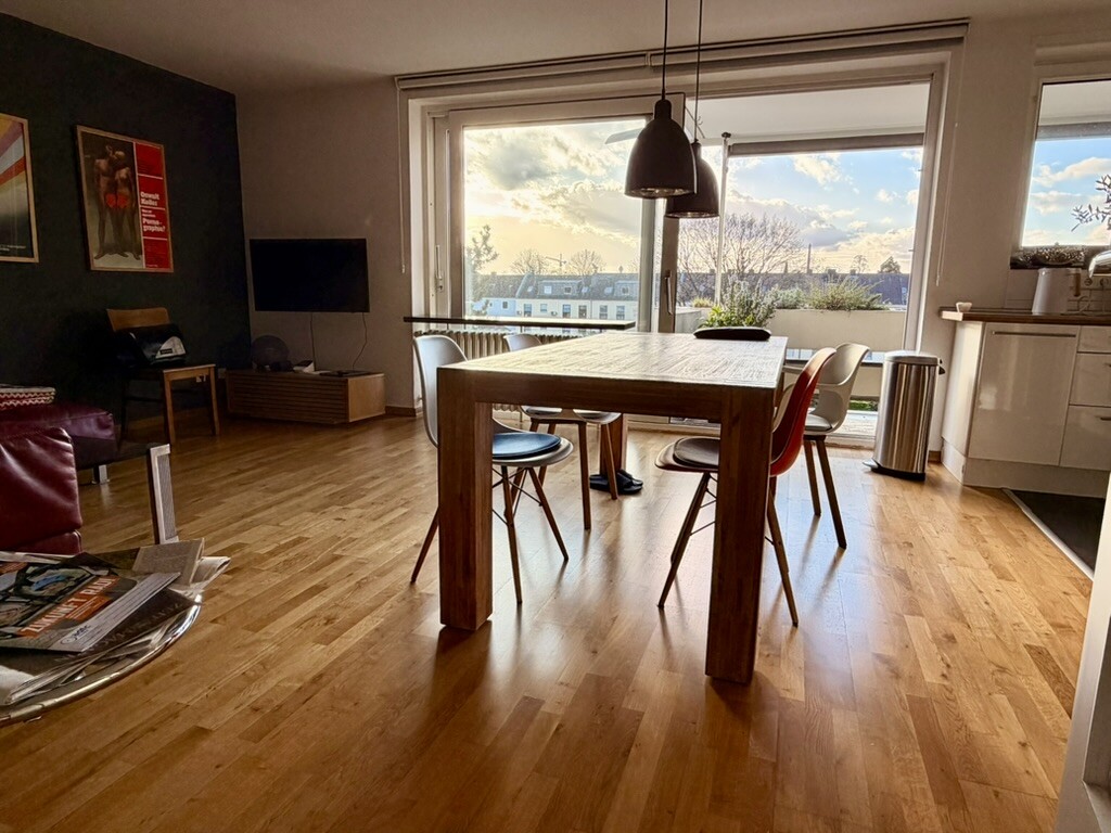 Es handelt sich um eine sonnige (helle) und gepflegte 4 Zimmer Wohnung im 3. (obersten) Geschoss einer überschaubaren Eigentümergemeinschaft (nur 8 Einheiten). Die Wohnung verfügt über große Fensterflächen, Schiebetüre zum Südbalkon. Sie blicken von hier über eine Einfamilienhaus-Siedlung. So auch schon der positive Eindruck, wenn man vor dem Haus steht, auf der gegenüber liegenden Straßenseite nur Einfamilienhäuser. Das Objekt befindet sich in einer ruhigen Sackgasse, in der Nähe vom Wochenmarkt / an der Kirche in Lörick.