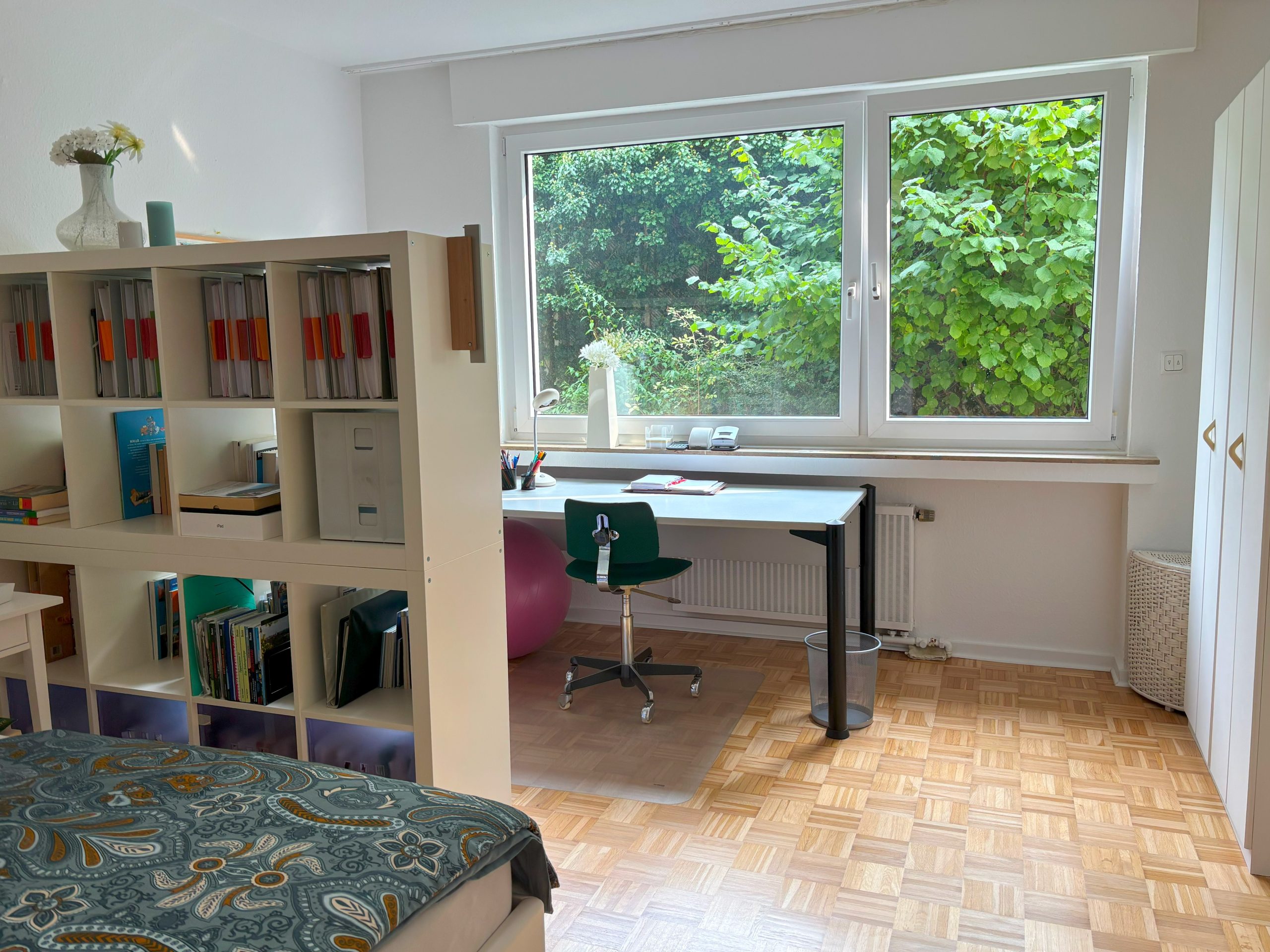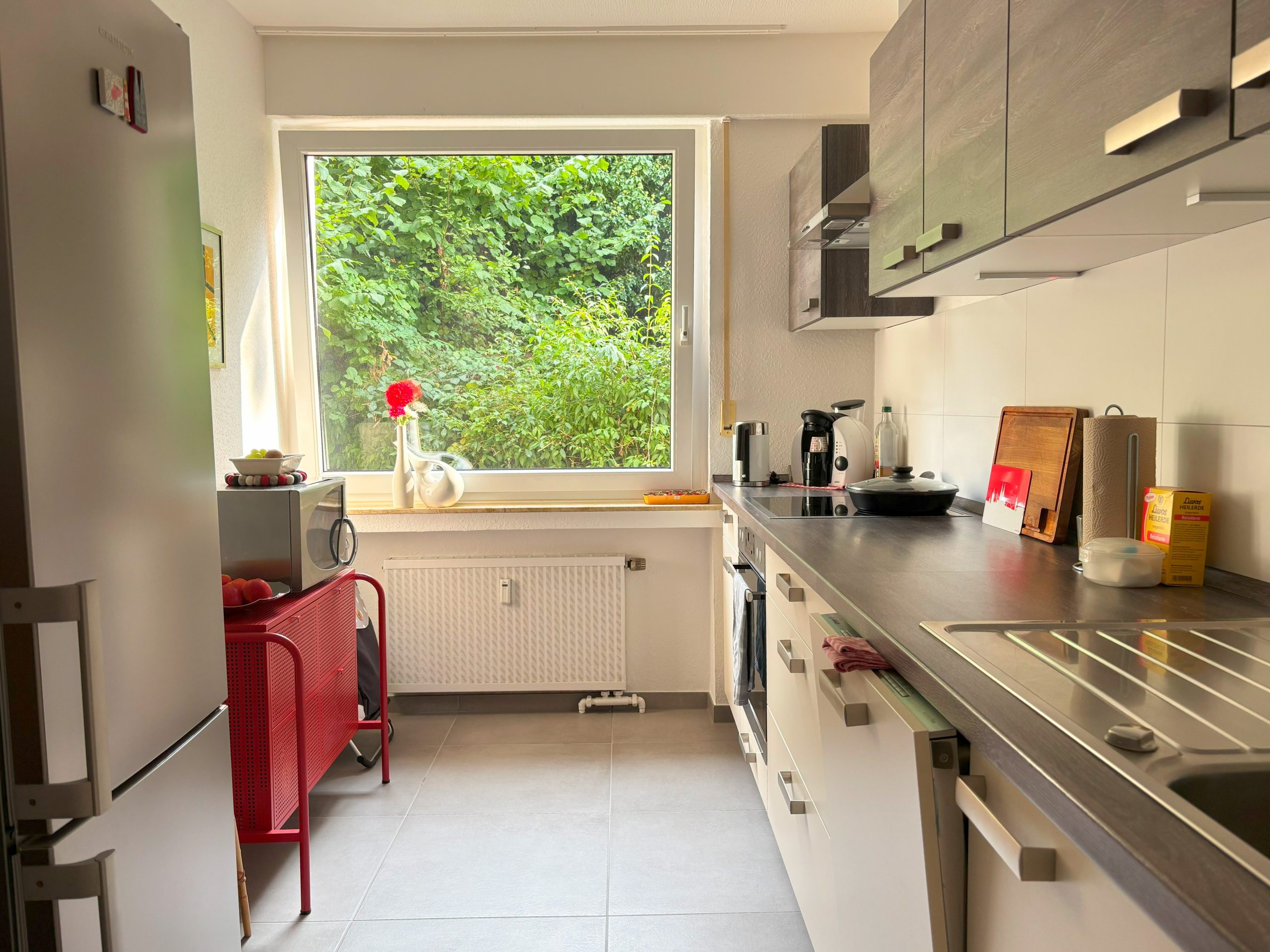 Diese gemütliche und helle 2-Zimmer-Wohnung befindet sich im Hochparterre eines gepflegten Mehrfamilienhauses in Neu-Frankenforst. Die Wohnung wurde im Jahr 2020 komplett renoviert. Beide Zimmer sowie die Diele sind mit Parkett ausgelegt, Bad und Küche sind gefliest. Das Bad verfügt über eine barrierearme Dusche, einen Waschtisch und ein WC. Die Küche ist sehr geräumig und hat ein großes Fenster. Vom Balkon hat man einen ruhigen Blick ins Grüne. Ein Kellerraum, eine Waschküche sowie ein Garagenstellplatz gehören ebenfalls zur Wohnung.