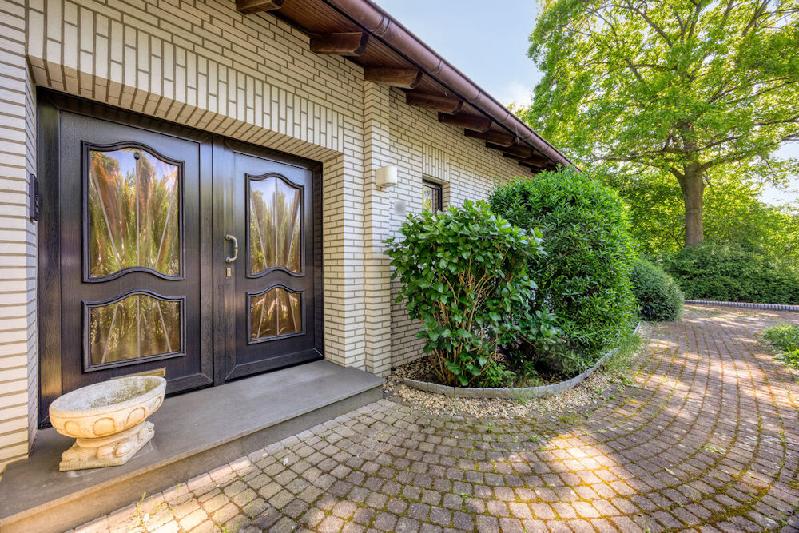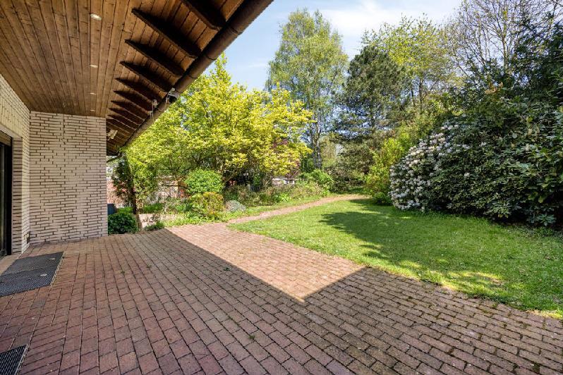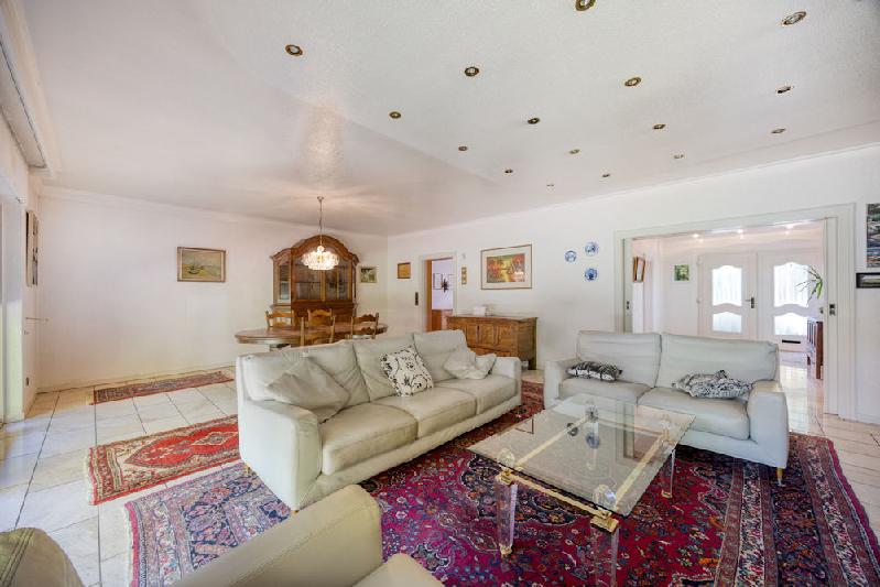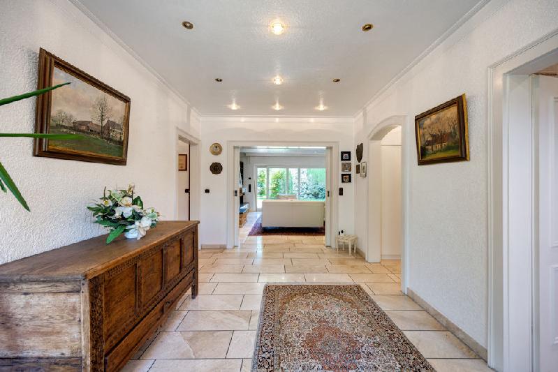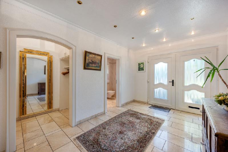 Im Mittelpunkt steht der weitläufige Wohnbereich mit direktem Zugang zum Garten, der den privaten Lebensmittelpunkt des Hauses eindrucksvoll in den Außenbereich erweitert. Ergänzt wird das Erdgeschoss durch eine separate Küche, zwei Schlafzimmer, ein Badezimmer, ein Gäste-WC sowie eine großzügige Eingangsdiele, die dem Haus einen repräsentativen Empfangscharakter verleiht.