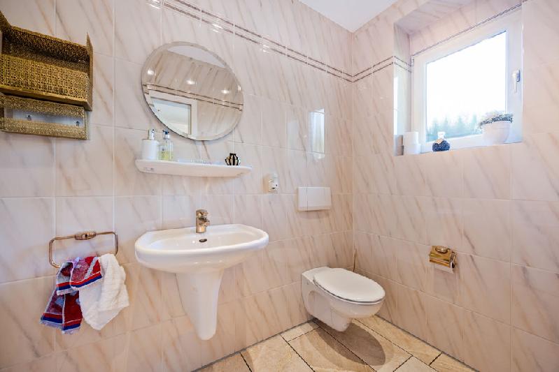 Das Haus ist teilweise unterkellert. Der Keller verfügt über eine komfortable Deckenhöhe und bietet damit ein vielseitig nutzbares Raumangebot. Ein Raum ist wohnraumähnlich ausgebaut, zählt jedoch nicht zur offiziellen Wohnfläche. Dieser ist gefliest, mit einem großen Fenster versehen und dadurch gut belichtet. Darüber hinaus befindet sich im Kellergeschoss ein weiteres WC. In Teilbereichen des Kellergeschosses sind an den das Erdreich berührenden Außenwänden erhöhte Feuchtigkeitswerte messbar.