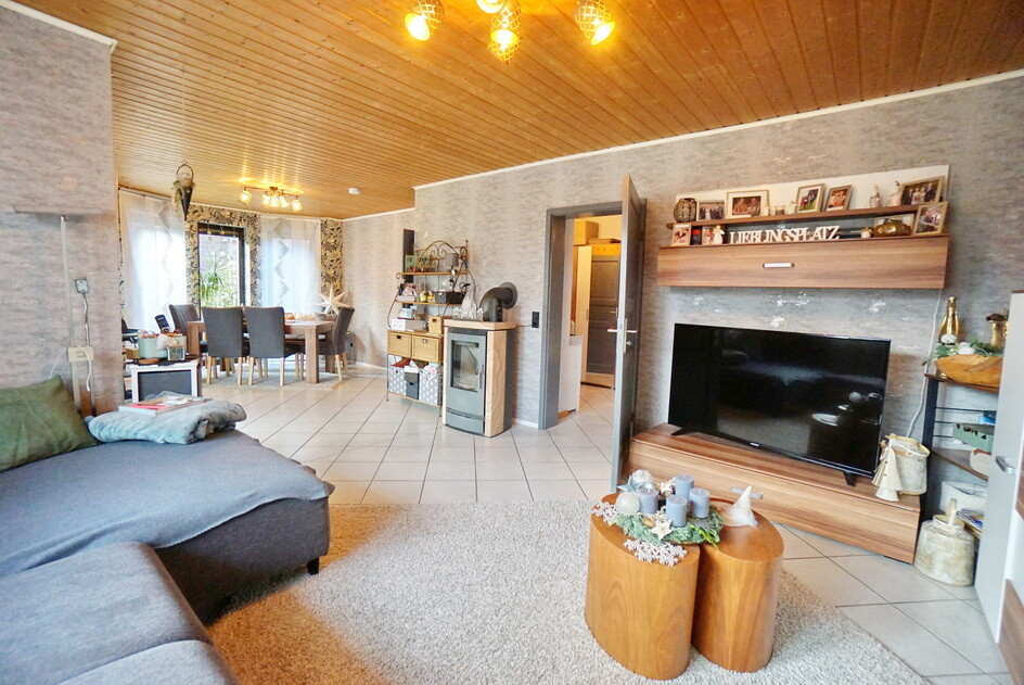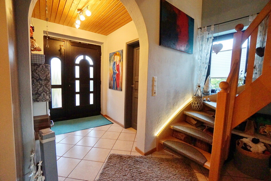 Bereits bei Betreten des Hauses wird spürbar, in welchem sehr gepflegten Zustand sich die Immobilie befindet. Im Flur sind ein Gäste-WC und praktischer Garderobenbereich vorhanden. Zudem ist hier Platz für Schränke und Abstellmöglichkeiten. Das Erdgeschoss besticht durch ein großzügiges Wohn-/Esszimmer, das eine wohnliche Atmosphäre bietet. Die angrenzende Küche mit Einbauküche lädt zum Kochen und geselligem Beisammensein ein. Ein praktischer Hauswirtschaftsraum rundet das Raumprogramm ab. Diese Räumlichkeiten verteilen sich auf ca. 65 m². Zahlreiche Fensterelemente im Wohnzimmer bieten einen schönen Ausblick in den liebevoll angelegten Garten.