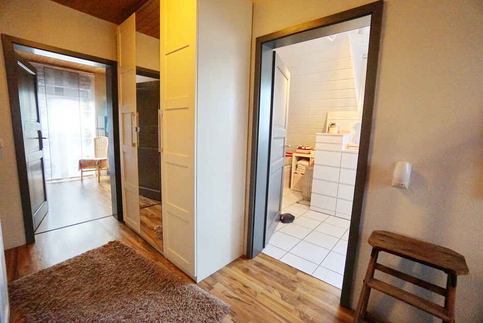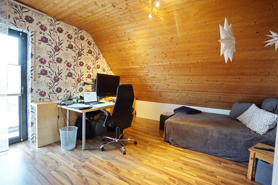 Im Dachgeschoss des Hauses befinden sich drei Schlafzimmer, die ausreichend Platz für Büro und Familie bieten. Das geflieste Tageslichtbad ist mit einer Badewanne und Dusche ausgestattet, was Komfort und Funktionalität vereint. Der Spitzboden ist wohnlich ausgebaut und bietet Platz als Kinder-/oder Hobbyzimmer. Ohne den ausgebauten Spitzboden verfügt die Immobilie über ca. 120 m² Wohnfläche.