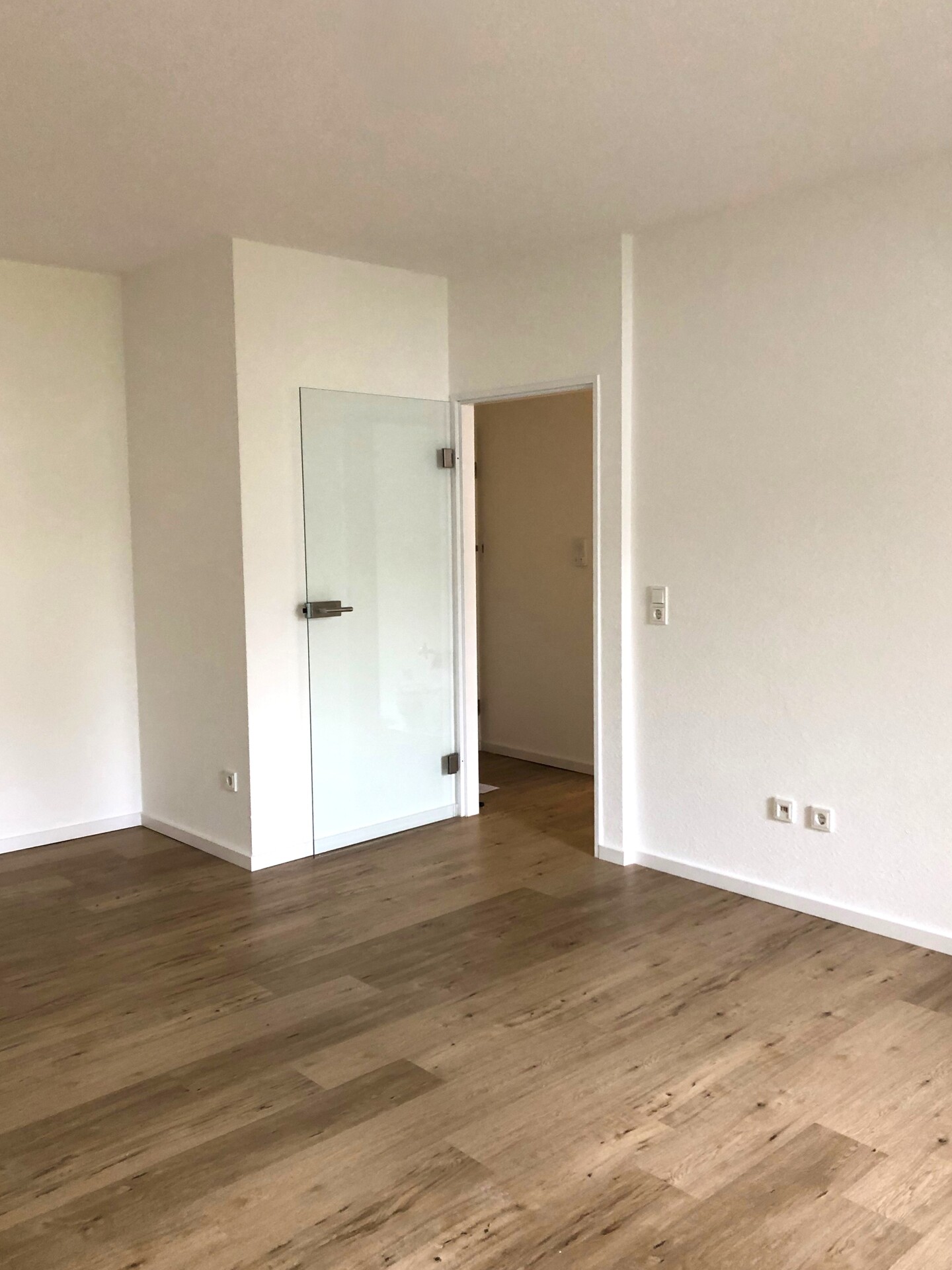 Die Wohnung ist mit modernem Vinylboden ausgestattet, die Wände neutral in Weiß gehalten. Dadurch lässt sich die Wohnung leicht nach eigenen Vorstellungen einrichten.