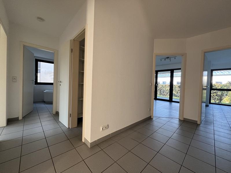 Die Wohnfläche von ca. 89 m² verteilt sich auf einen Eingangsbereich, von dem aus alle Räume zu erreichen sind, das Büro, das Schlafzimmer, ein Tageslicht Badezimmer mit Dusche und Badewanne, einen Abstellraum, die Küche, das großzügige Wohnzimmer und das Gäste-WC. Der Balkon ist sowohl vom Büro als auch vom Schlafzimmer begehbar. Zugang zur Terrasse und dem Garten haben Sie über das Wohnzimmer und die Küche. Außerdem können Sie durch den Garten auch die Garage von hinten erreichen.