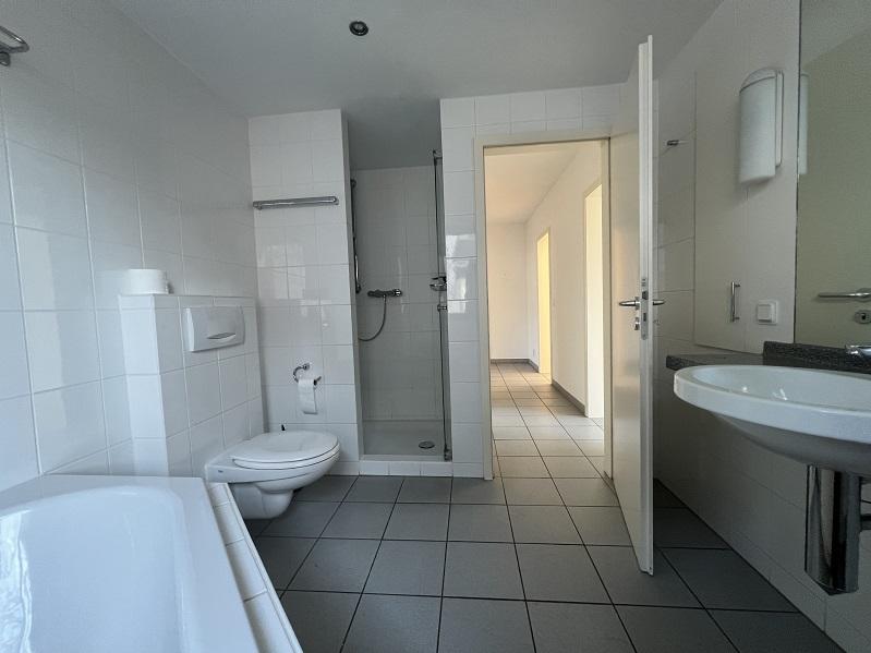 - Badausstattung: Dusche, Badewanne, Fenster im Badezimmer