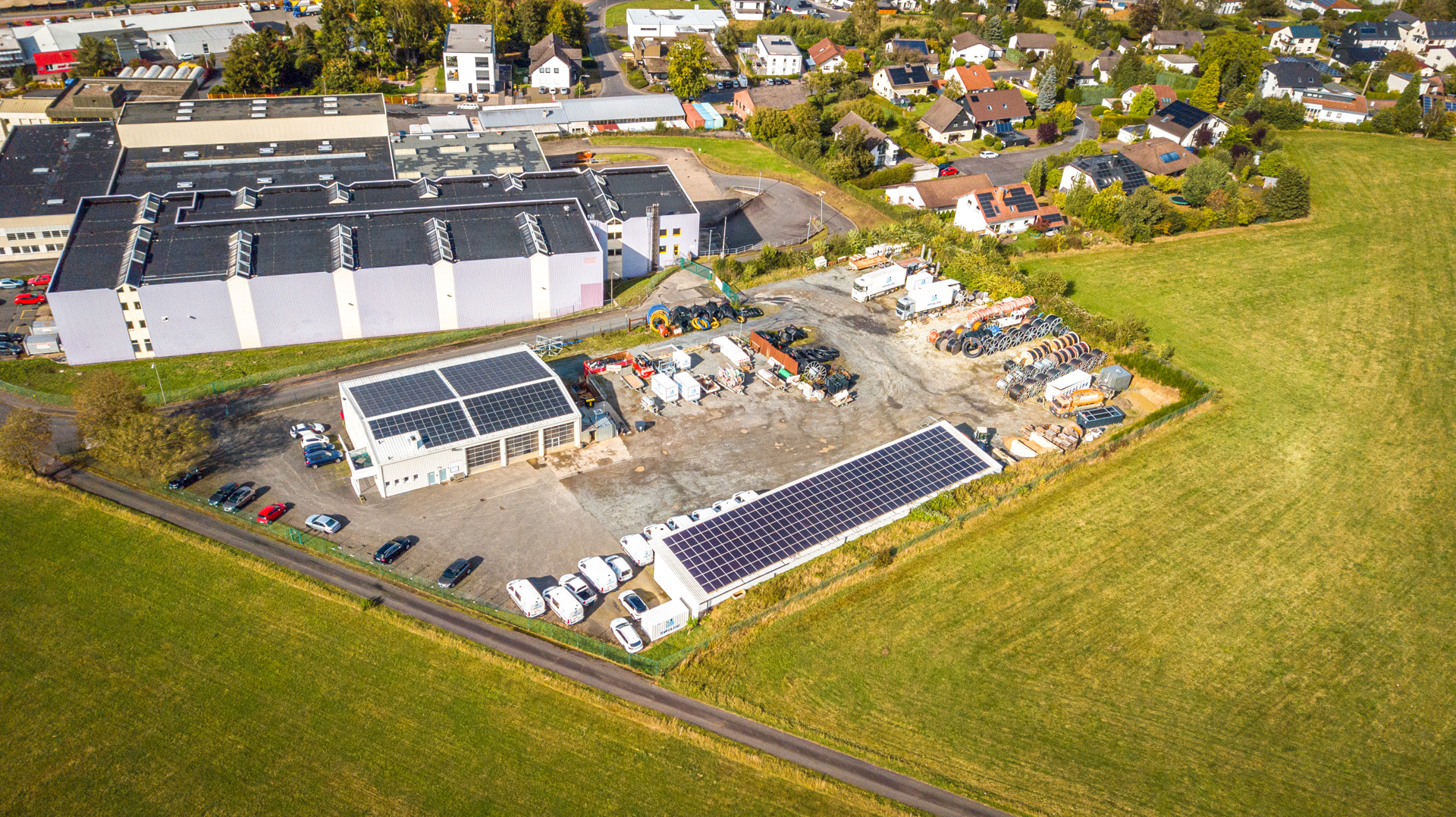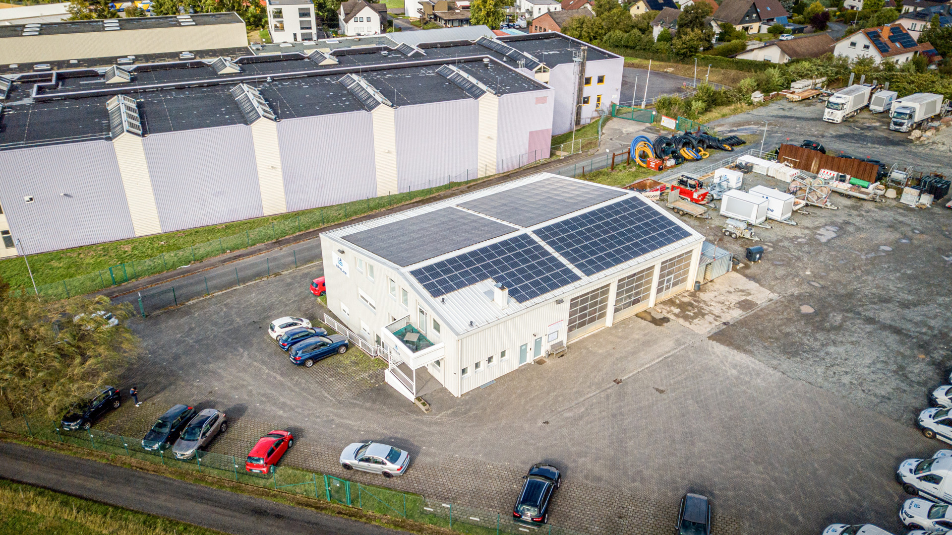 Das Hauptgebäude wurde Anfang der 80er Jahre auf einem rund 8.540 m² großen Grundstück gebaut und bietet eine großzügige Bürofläche mit Werkstatt von ca. 528 m². 1987/1988 wurde das Objekt um eine Gerätehalle für den Fuhrpark mit einer Fläche von ca. 391 m² erweitert. Die Freifläche beträgt ca. 7.621 m².