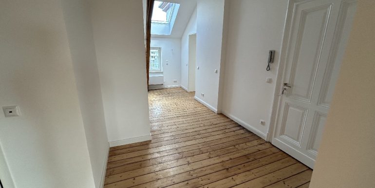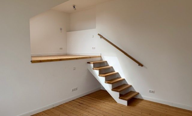 – Dachgeschoss mit hohen Decke und Sichtbalken