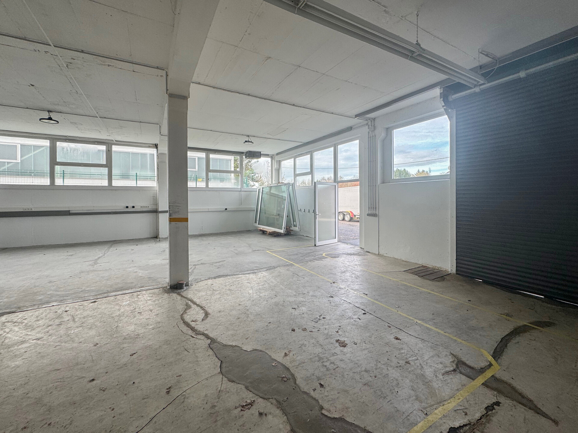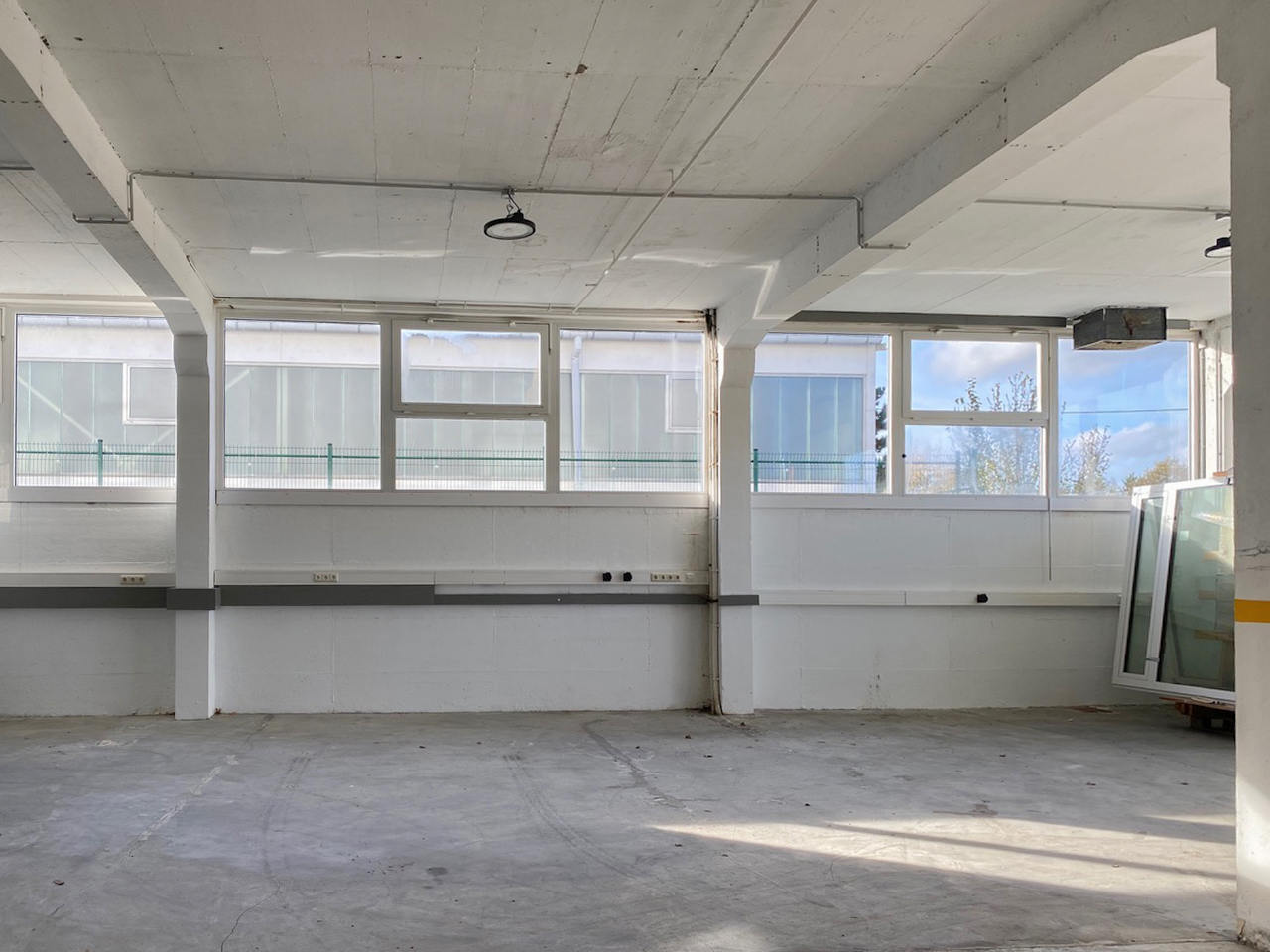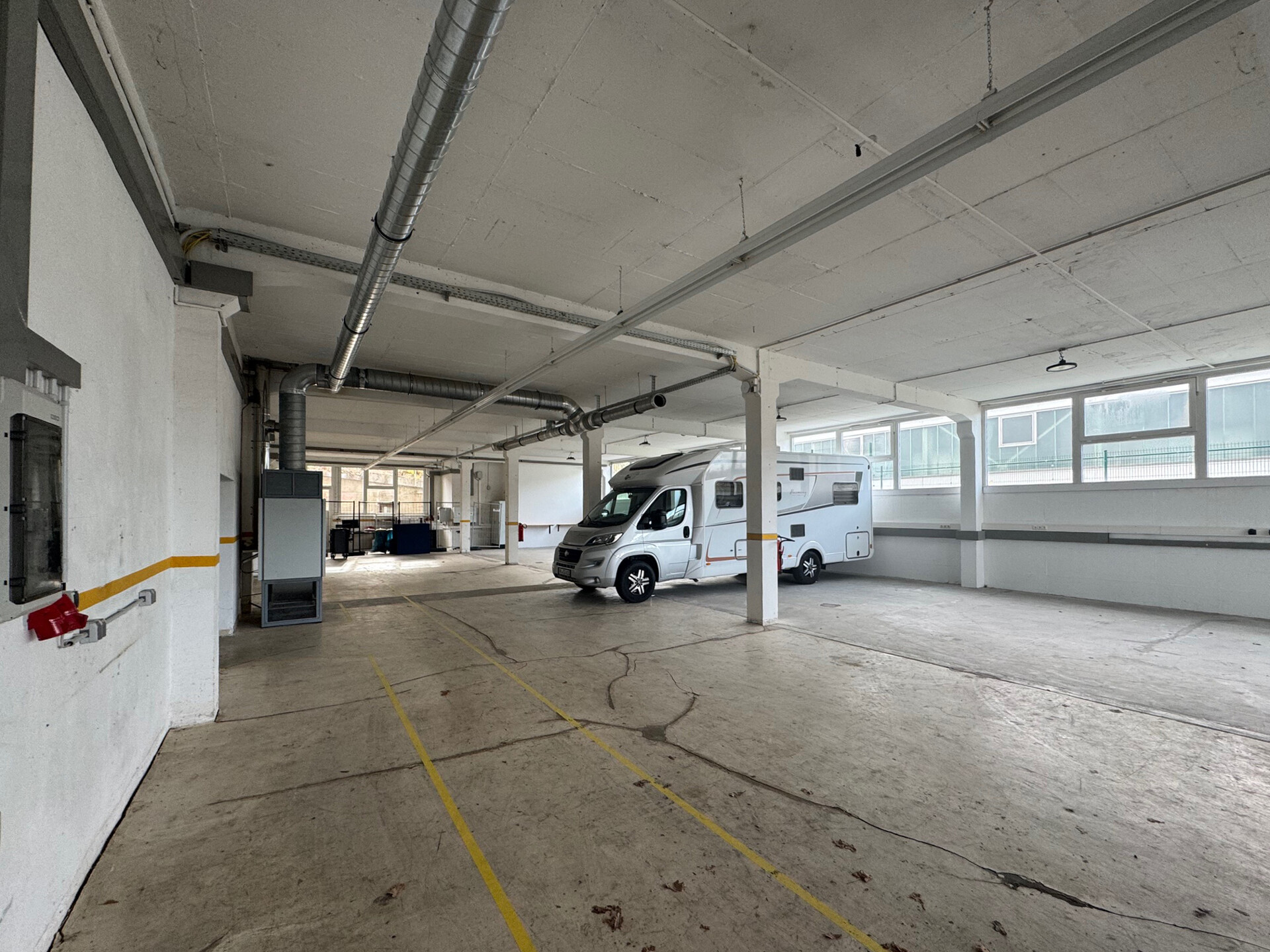 Die Halle verfügt über eine angenehme Deckenhöhe, gute Belichtung und ist für verschiedene Nutzungsarten geeignet – von Produktion über Montage bis hin zur Lagerhaltung.