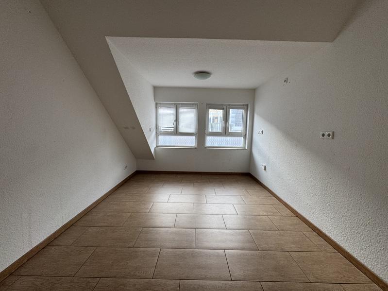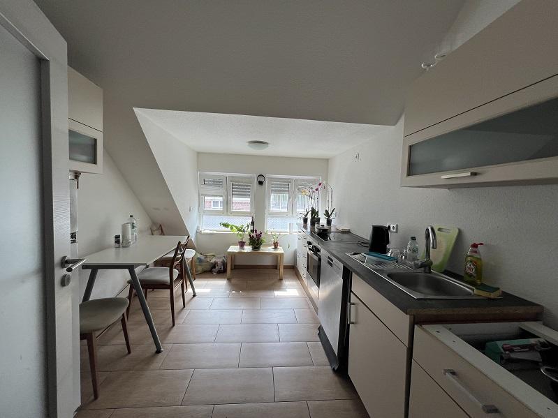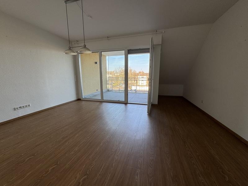 Diese 2 Zimmer Wohnung befindet sich im Dachgeschoss und verteilt sich auf eine Diele, ein Schlafzimmer, ein Tageslichtbadezimmer mit Dusche, eine Küche und einen großen hellen Wohnraum. Von dort aus gelangen Sie auf den großzügigen Balkon. Derzweite Balkon grenz an das Schlafzimmer.