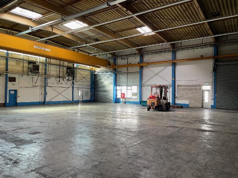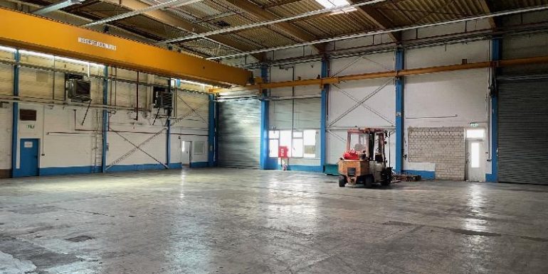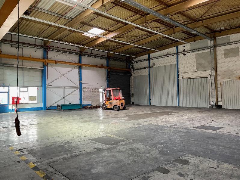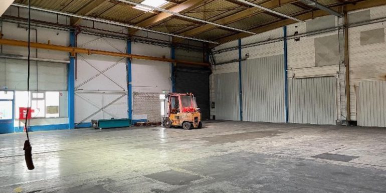 Die Andienung der Halle ist ebenerdig. Die Torgröße liegt bei ca. 4,70 m x 5,10 m. Die Deckenhöhe UKB liegt zwischen ca.7,90 m.