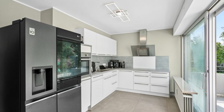 Das Herzstück der Wohnung bildet das helle Wohnzimmer mit direktem Zugang zum ersten Balkon. Angrenzend an das Wohnzimmer befindet sich die offen gestaltete, moderne Küche, die nicht nur durch Design und Funktionalität überzeugt, sondern zusätzlich über einen weiteren eigenen Balkon verfügt. Sowohl im Wohnzimmer als auch in der Küche sorgen integrierte Jalousien für angenehmen Sonnenschutz und ein Plus an Privatsphäre.
