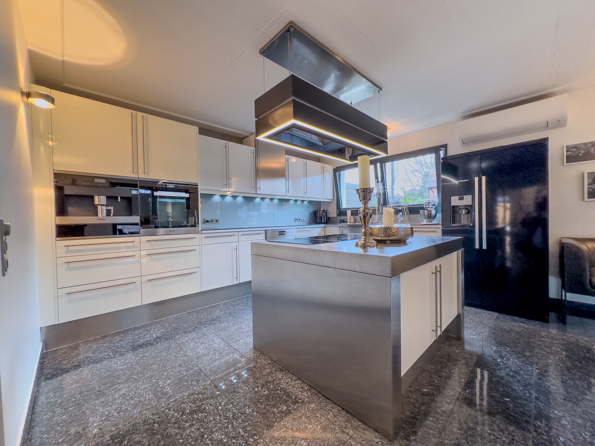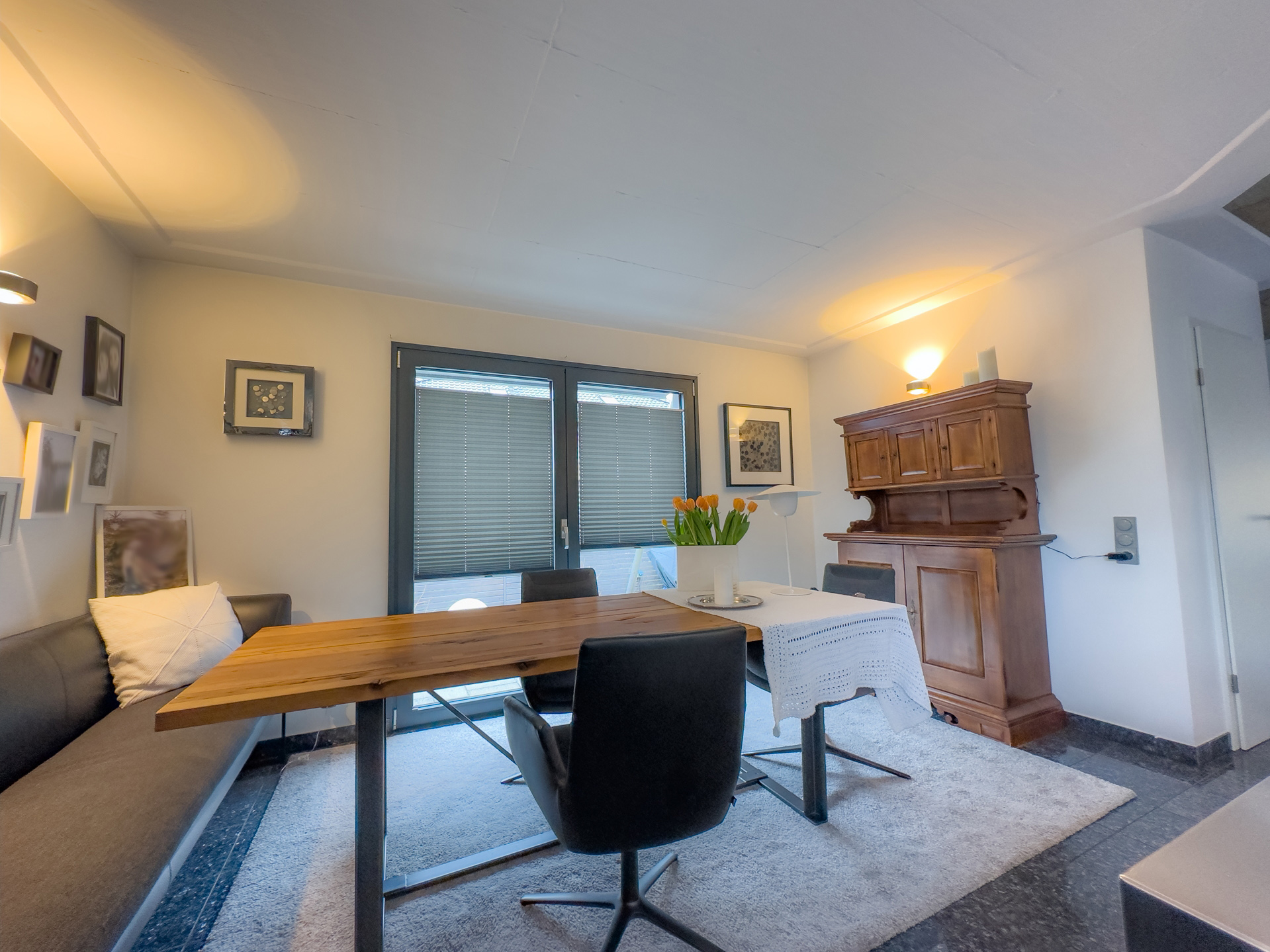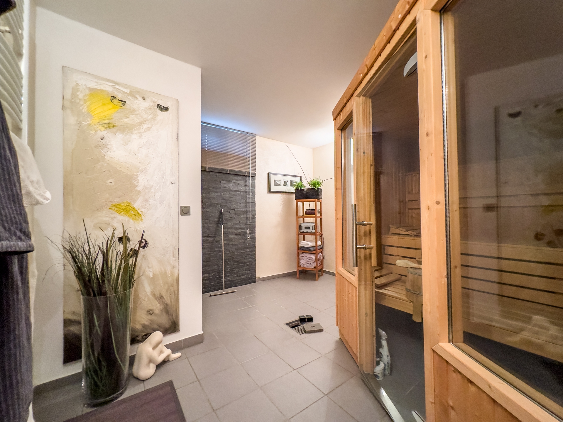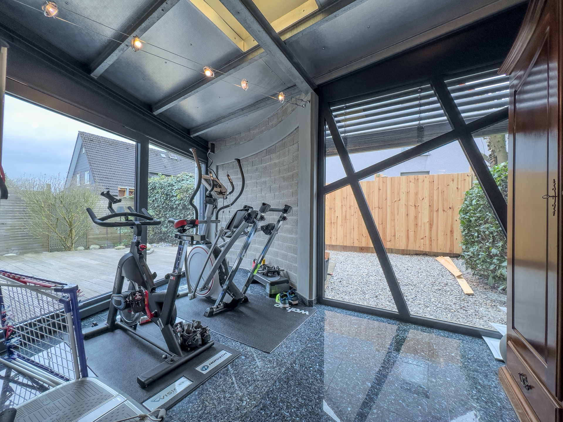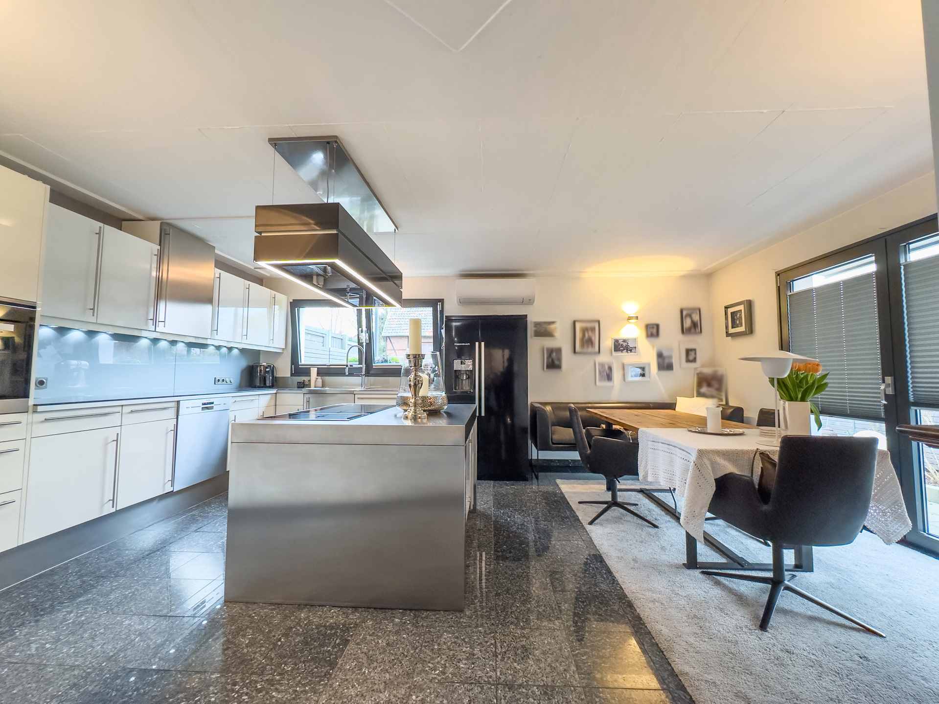 Willkommen in Ihrer neuen Traumwohnung, die durch moderne Ausstattung und stilvolle Designelemente besticht. Diese exquisite Wohnung ist als Anbau an ein Mehrfamilienhaus konzipiert und bietet Ihnen die perfekte Kombination aus privatem Rückzugsort und geselligem Leben. Der eigene Gartenteil ist ein wahres Paradies für Naturliebhaber. Ein kleiner Teich, umgeben von üppigem Grün, lädt zum Verweilen und Entspannen ein. Das großzügige Holzdeck ist der ideale Ort für Sonnenliegen und bietet ausreichend Platz für eine Outdoorküche perfekt für gesellige Grillabende mit Freunden und Familie. Betreten Sie das lichtdurchflutete Erdgeschoss, wo die offene Küche mit einem einladenden Essplatz auf Sie wartet. Bodentiefe Fenster ermöglichen einen nahtlosen Übergang zur Terrasse und lassen viel Tageslicht herein. Ein stilvolles Gäste-WC sorgt für zusätzlichen Komfort. Das Wohnzimmer, ausgestattet mit einem edlen Design-Edelstahlkamin, ist ein Highlight, das Gemütlichkeit und Eleganz vereint. Ein flexibler Fitness- oder Arbeitsbereich mit direktem Zugang zur Terrasse rundet das Erdgeschoss ab und bietet die Möglichkeit, Arbeit und Freizeit harmonisch zu verbinden. Im Obergeschoss erwarten Sie zwei geschmackvoll gestaltete Räume. Ein modernes Gäste-Badezimmer mit Dusche sorgt für Komfort und Privatsphäre. Ein besonderes Highlight ist die Galerie, die sich ideal als Homeoffice eignet und Ihnen einen inspirierenden Arbeitsplatz bietet. Das Kinderzimmer bietet zwei coole Schlafkojen die jeweils über eine Leiter zu erreichen sind. Das Schlafzimmer ist ein Rückzugsort der Extraklasse, ausgestattet mit einem direkten Zugang zum luxuriösen Wellnessbadezimmer hier können Sie nach einem langen Tag entspannen und neue Energie tanken. Der Keller bietet nicht nur praktische Lagermöglichkeiten, sondern auch eine eigene Sauna mit Dusche Ihr persönlicher Wellnessbereich. Zudem gelangen Sie bequem in die geräumige Tiefgarage, die ausreichend Platz für Ihr Fahrzeug, Fahrräder eine Brauchwasseranlage (Regenwasser) und andere Dinge bietet. Dieses moderne Haus verbindet stilvolles Wohnen mit einem hohen Maß an Lebensqualität. Die durchdachte Raumaufteilung, die hochwertigen Materialien und die zahlreichen Designelemente schaffen eine harmonische Atmosphäre, die zum Verweilen und Genießen einlädt. Überzeugen Sie sich selbst von diesem einzigartigen Angebot und vereinbaren Sie noch heute einen Besichtigungstermin. Ihr neues Zuhause wartet auf Sie!