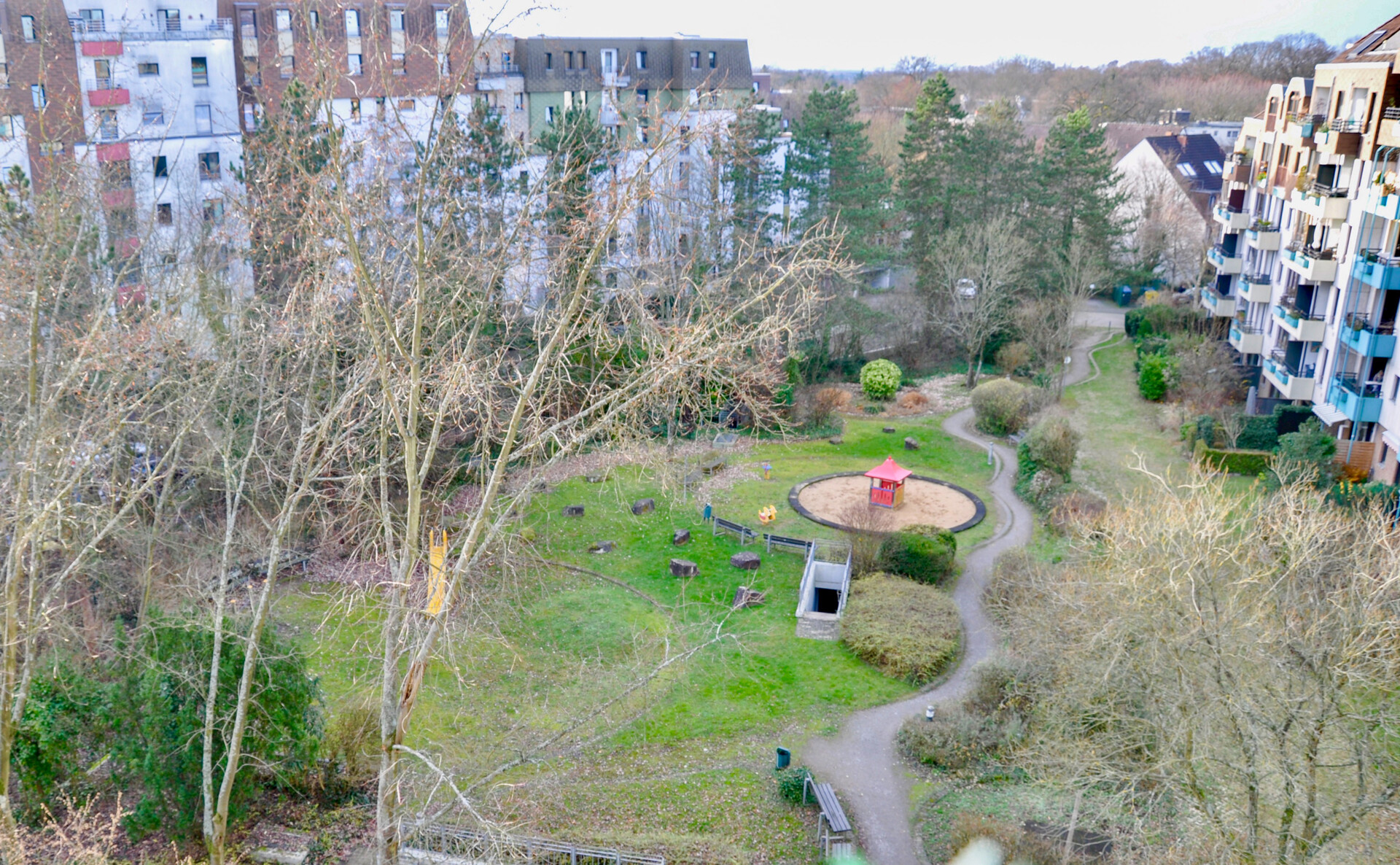 Die Immobilie liegt verkehrsgünstig im Stadtteil Frankenforst im Osten von Bergisch Gladbach. Im Innenhof der Wohnanlage befinden sich verschiedene Sitzmöglichkeiten zum Verweilen und ein Spielplatz. Eine ÖPNV-Haltestelle, Supermärkte (z. B. Aldi Süd), Bäckereien und weitere Alltagseinrichtungen sind fußläufig erreichbar. In der Schloßstadt Bensberg finden Sie sämtliche Einkaufsmöglichkeiten für den täglichen Bedarf sowie Ärzte, Banken und Restaurants.